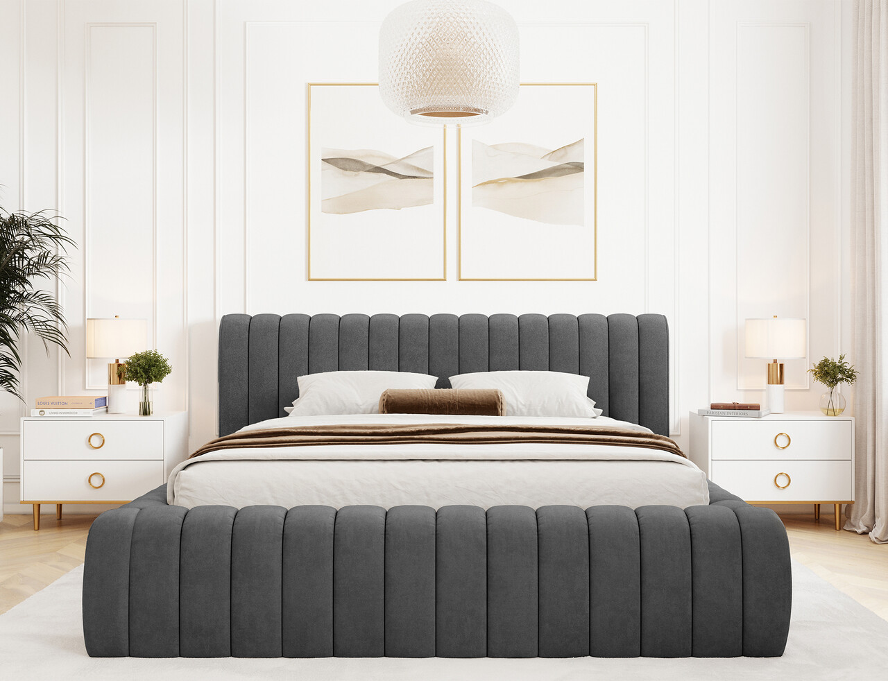 Pat tapitat cu somiera rabatabila si lada depozitare 180x200 cm ELTAP 06SO-1.8 Carilla metal/poliester gri antracit