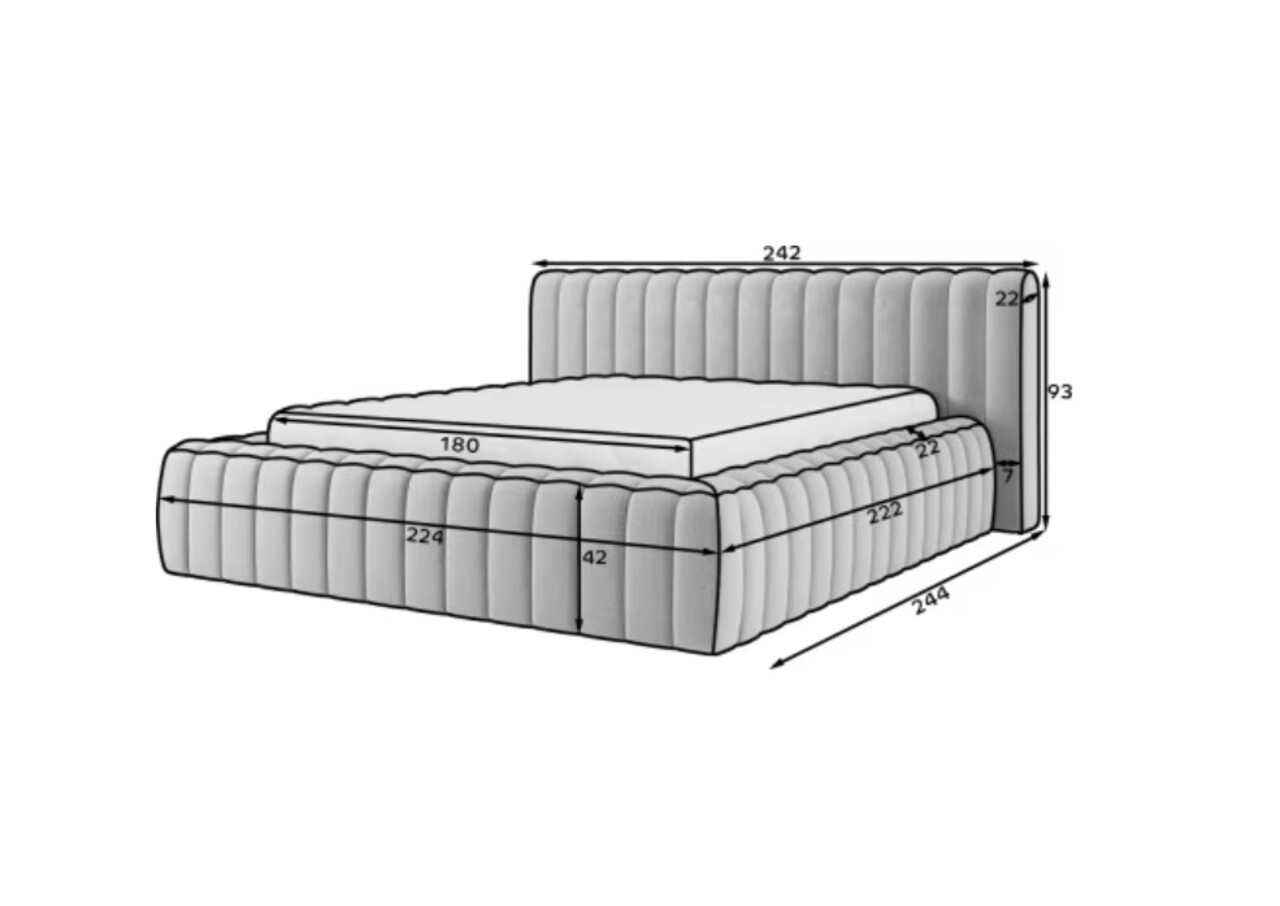 Patul Carilla este o piesa de mobilier moderna si eleganta, disponibila in trei dimensiuni: 140x200 cm, 160x200 cm si 180x200 cm, integrandu-se perfect in tendintele interioarelor contemporane. Confortul utilizarii este asigurat de umplutura ramei si a tetierei cu spuma poliuretanica de inalta calitate T2130 si T2315, garantand durabilitate si confort. Constructia sa solida se bazeaza pe un cadru metalic cu 36 de lamele, oferind un suport excelent pentru saltea si un somn odihnitor. Intregul ansamblu este completat de un glisor negru care evidentiaza stabilitatea si estetica piesei de mobilier.Compozitie materialMaterial tapiterie: 100% poliester (tesatura primara Monolith 97).Material cadru: metalUmplutura cadru: spuma poliuretanica T2130 si spuma T2315Umplutura spatar: spuma poliuretanica T2130 si spuma T2315Picioare din plastic de culoare neagra.Informatii si dimensiuni specificeInaltime sezut: 42 cmInaltime picioare: 2 cmGreutatea maxima suportata: 280 kgDimensiuni lada depozitare: 180x200x19 cmSomiera rabatabila cu piston pe gazNumar lamele: 36Suprafata de dormit: 180x200 cmProdusul necesita asamblare.