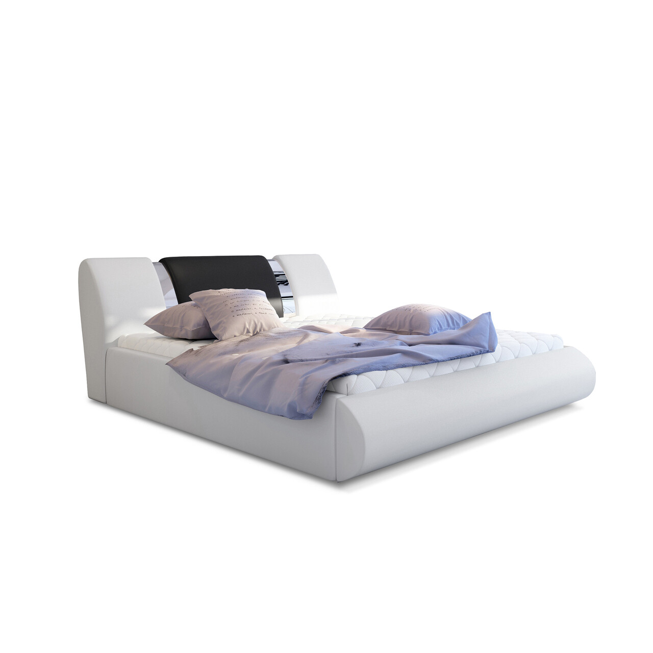 Pat tapitat cu somiera si lada depozitare 140x200 cm ELTAP Flavio lemn/poliester alb/negru