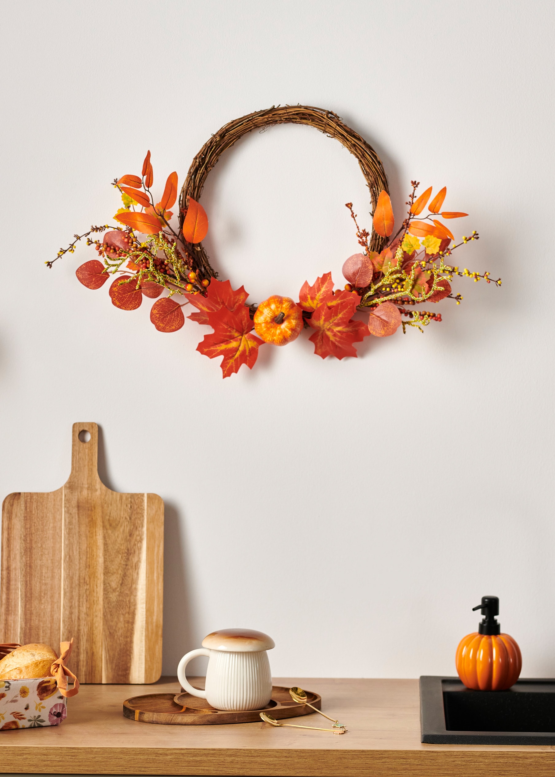 Coronița decorativă Sinsay, de culoare portocalie, aduce un strop de magie și optimism în orice spațiu. Inspirată de frumusețea toamnei, aceasta este perfectă pentru a adăuga o notă caldă și vibrantă în decorul tău. Realizată cu atenție la detalii, coronița este ideală pentru a fi utilizată atât în interior, cât și în exterior, fiind un accent minunat pentru uși, feronerie sau mese. Transformă-ți casa într-un cămin primitor și plin de culoare cu această coroniță decorativă care evocă atmosfera toamnei.