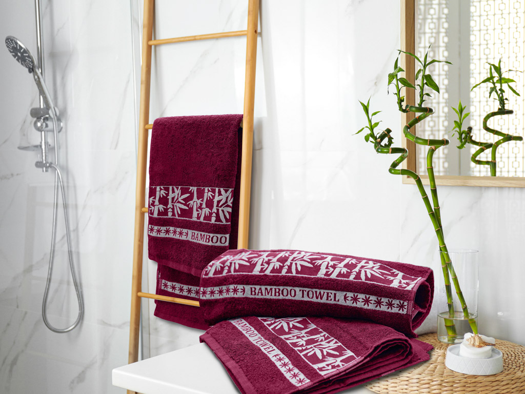 Prosop de baie din fibra de bambus visiniu BAMBOO