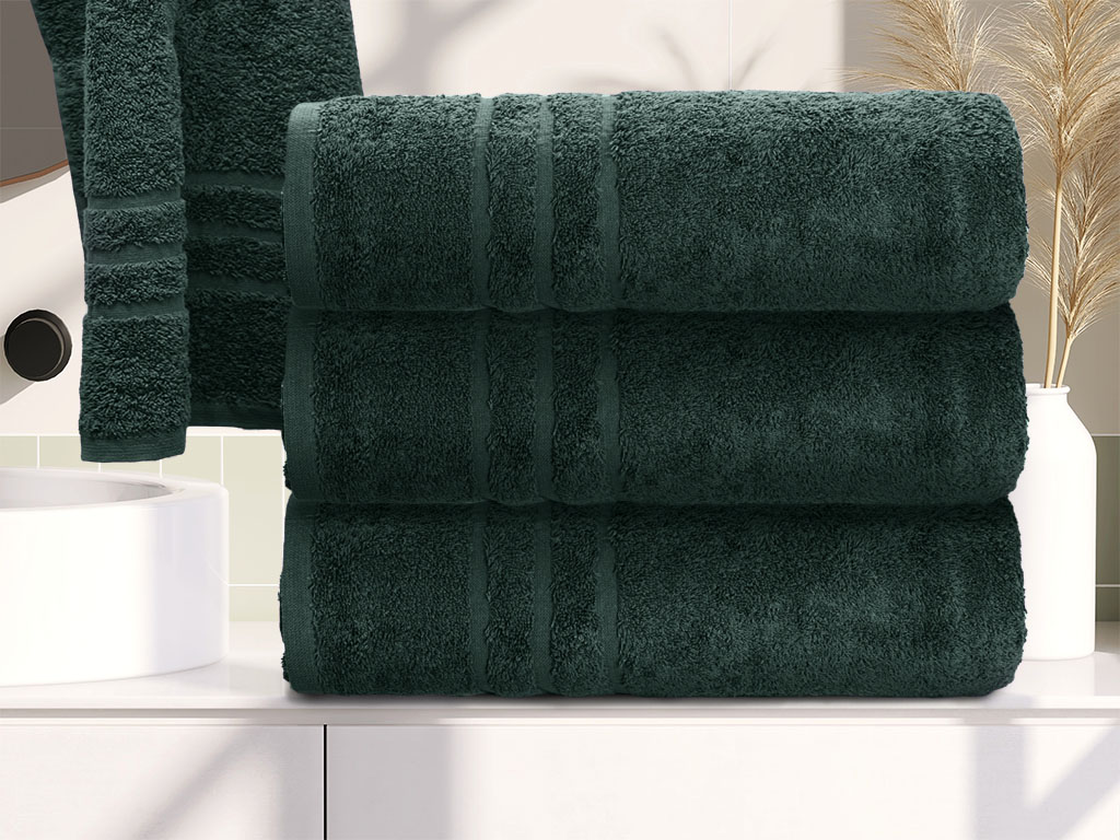Prosopul de corp Classic verde închis este realizat din bumbac de calitate superioară, cu un gramaj de 400 g/m², asigurând o absorbție excelentă și confort. Dimensiunile de 70 x 140 cm oferă o acoperire optimă pentru întreaga familie, fiind ideal atât pentru baie, cât și pentru plajă sau piscină. Culoarea verde închis aduce o notă de natură și armonie, având un efect liniștitor asupra spațiului. Certificatul OEKO-TEX Standard 100 garantează siguranța și absența substanțelor dăunătoare, iar îngrijirea ușoară a prosopului îi menține proprietățile deosebite, asigurându-i o utilizare îndelungată.
