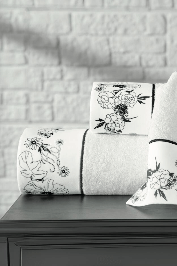 Setul cadou de prosoape și prosop de corp WHITE FLOWERS este alegerea perfectă pentru cei care apreciază confortul și eleganța. Fabricate din bumbac 100% de înaltă calitate, aceste prosoape oferă o moalețe extraordinară și absorbție excelentă. Fiecare piesă este decorată cu o bordură delicată și un motiv floral negru, conferindu-le un aspect sofisticat și romantic. Ambalat într-o cutie cadou elegantă, acest set este ideal pentru orice ocazie specială. Adăugați o notă de lux și frumusețe în viața de zi cu zi cu setul WHITE FLOWERS de la Tivolyo Home.