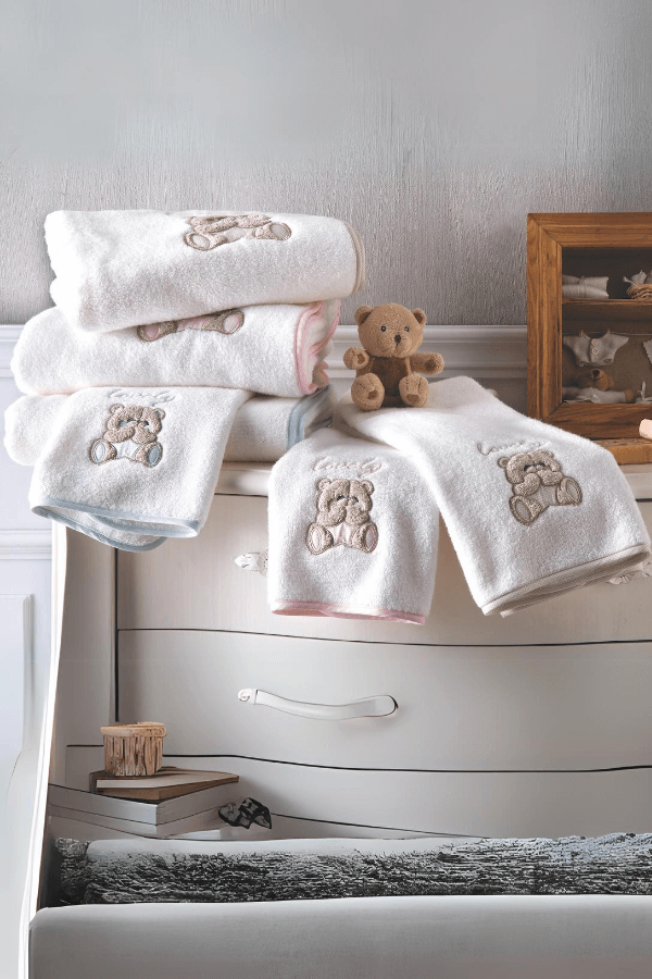Setul de cadou pentru copii LOVELY contine doua prosoape, unul de 50x90 cm si unul de 70x130 cm, fabricate din bumbac 100% de inalta calitate, cu o densitate de 550 g/m². Acestea sunt decorate cu o broderie adorabila de ursulet si sunt disponibile in mai multe culori. Prosoapele sunt ambalate intr-o cutie eleganta, perfecta pentru a fi oferite ca si cadou, protejand produsele si facandu-le gata de utilizare imediata. Perfecte pentru a aduce bucurie micilor prințese si prinți, oferind in acelasi timp părinților un produs de calitate si practic.