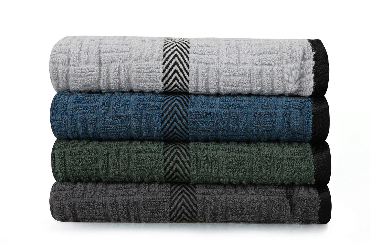 Setul de prosoape L'essentiel Maison Jakarlı Havlu Setı Road Asortı-2 este compus din 4 piese elegante, ideale pentru orice baie. Fiecare prosop are dimensiunea de 50 x 90 cm, fiind perfect pentru a oferi confort și absorbție optimă. Culorile rafinate - albastru, albastru închis, verde și antracit - adaugă o notă modernă și sofisticată spațiului tău. Realizate din bumbac de calitate superioară, aceste prosoape sunt moi la atingere și rezistente în timp, asigurându-ți o experiență plăcută după fiecare utilizare. Transformă-ți rutina de baie cu acest set stilat!