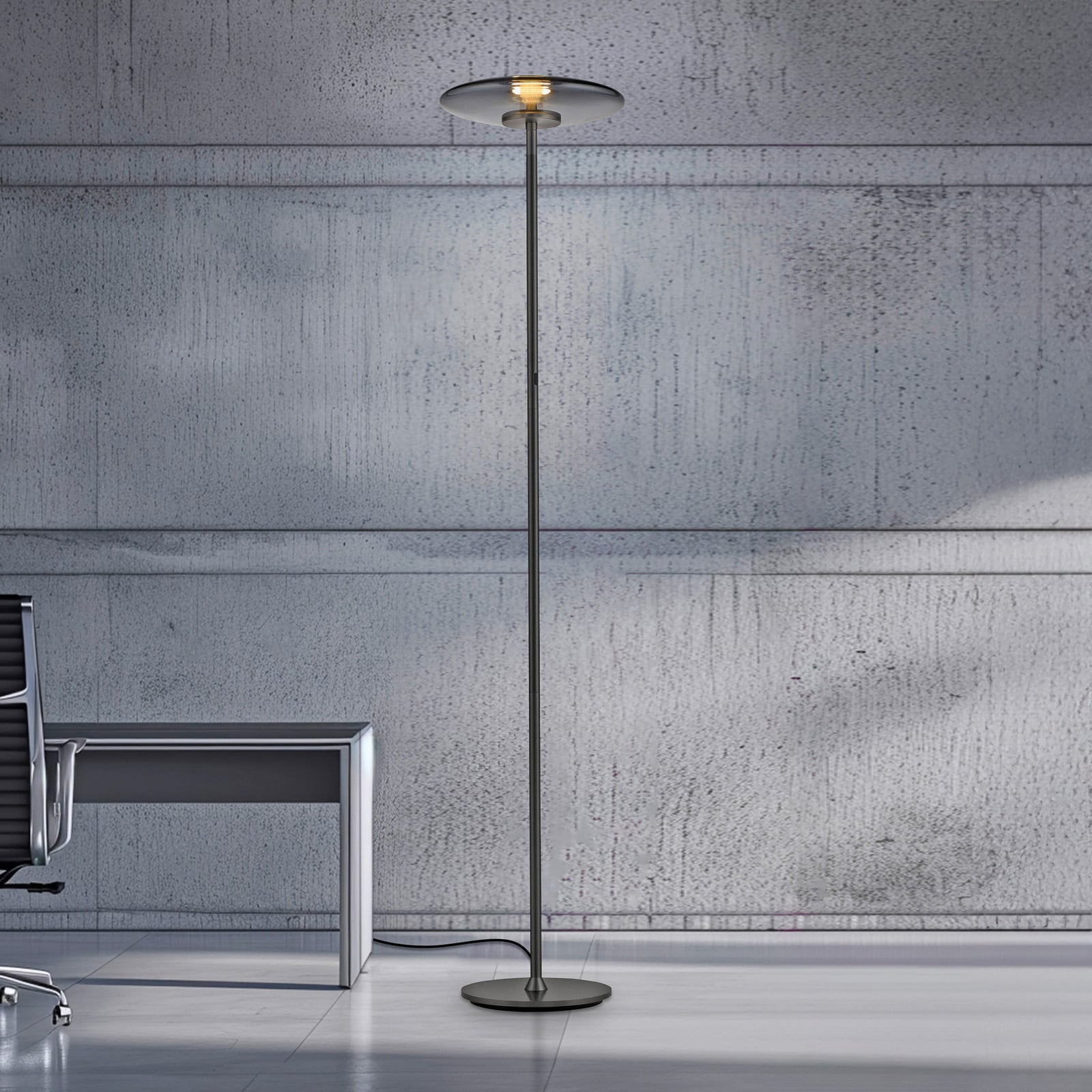 Lampă de podea Vitrum LED cu un design modern, ideală pentru livinguri și sufragerii, aceasta îmbină eleganța cu funcționalitatea. Realizată din aluminiu gri și sticlă fumurie transparentă, lampa dispune de un cap rotund care susține un panou LED cu lumină alb caldă, ce emite o iluminare plăcută atât în sus, cât și în jos. Abajurul din sticlă lenticulară adaugă un plus de stil, iar variatorul tactil oferă posibilitatea de a ajusta luminozitatea conform preferințelor tale. Vitrum este alegerea perfectă pentru a crea atmosfera dorită în orice încăpere.