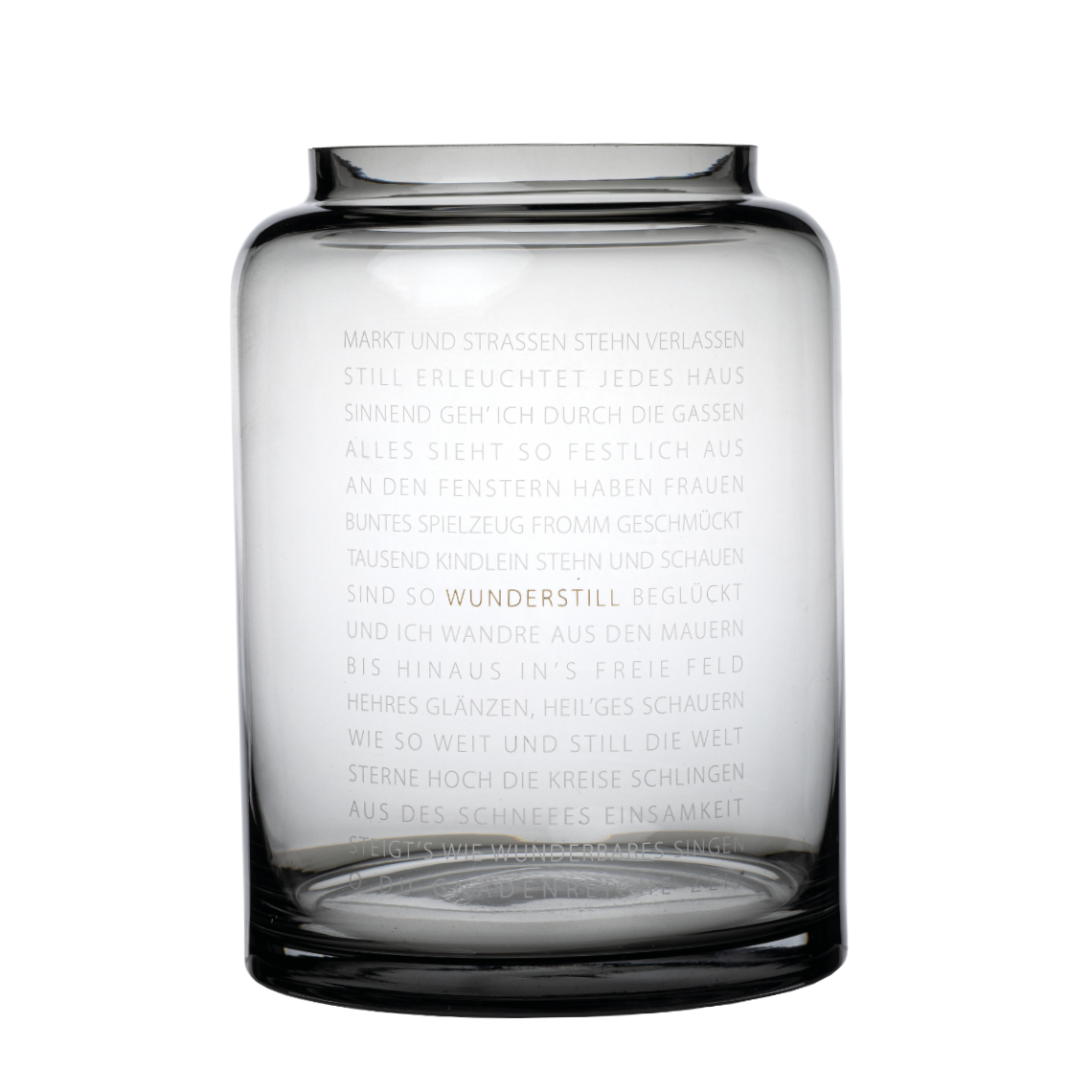 Vaza de sticlă WINTER de la Räder aduce un strop de eleganță și rafinament în orice decor. Realizată din sticlă afumată suflată manual, aceasta prezintă un imprimeu delicat care îi conferă un aspect unic. Cu un diametru de 19 cm și o înălțime de 25,5 cm, vaza este perfectă pentru a evidenția aranjamentele florale sau pentru a adăuga un accent decorativ. Culoarea gri subtilă completează armonios orice stil interior, transformând-o într-o piesă de rezistență pentru casa dumneavoastră.