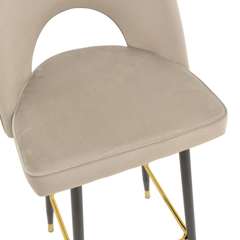 Scaun bar Casenio catifea bej cu baza metalica neagra si aurie 48x50x117 cm