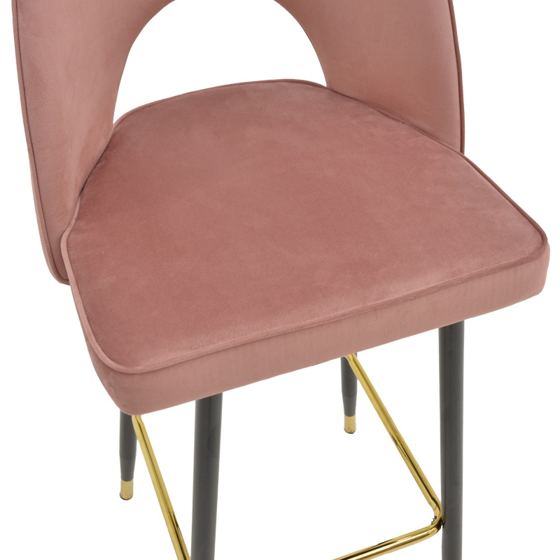 Scaun bar Casenio catifea mar rotteng negru si baza metalica aurie 48x50x117 cm