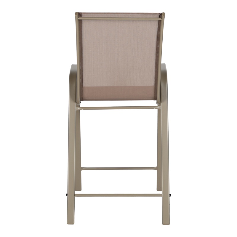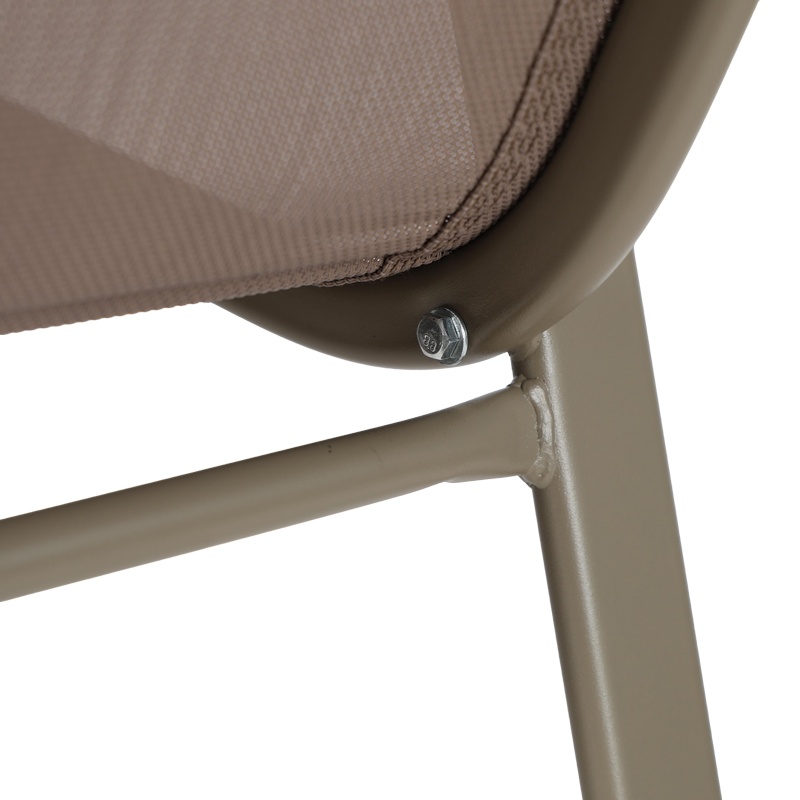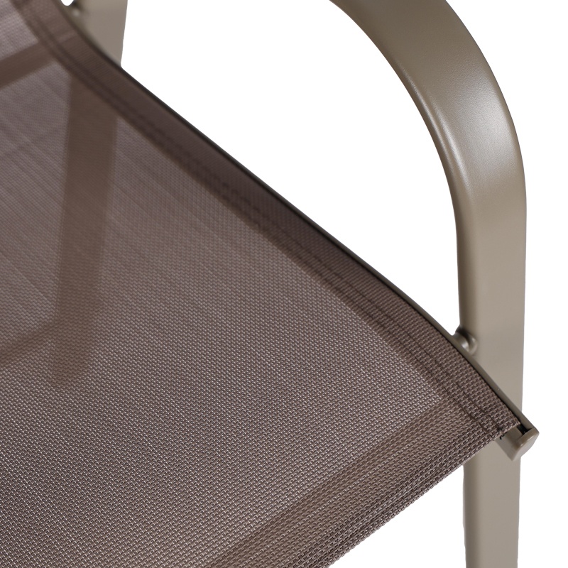 Scaun de bar Calan, maro deschis — confort respirabil și rezistență pentru interior și exterior Design și materiale de calitate Calan îmbină o siluetă simplă, modernă, cu finisaje elegante: cadru în nuanță sampanie și țesătură light brown Textilene care respiră și rămâne proaspătă la utilizare îndelungată. Materialele principale sunt Metal și Textilene , iar Textilene este un țesut din fibre de poliester acoperite cu PVC (policlorură de vinil) , oferind rezistență la soare și rezistență la umezeală . Deși produsul utilizează Metal și Textilene, nu conține Lemn PAL sau Lemn MDF , astfel aspectul rămâne aerisit și ușor de întreținut. Funcționalitate și organizare Proiectat pentru utilizare atât în bucătării și baruri, cât și în spații exterioare, scaunul oferă brațe integrate pentru susținere, un suport pentru picioare consolidat și șezut ergonomic la 65 cm înălțime pentru o poziție naturală. Dimensiunile compacte 55 x 70 x 114 cm îl fac ușor de poziționat; totodată, capacitatea de susținere de 160 kg garantează stabilitate și durabilitate în utilizare intensă. Montaj și întreținere Produsul se livrează asamblat în cutia de fabrică, gata să își ia locul în spațiul tău. Pentru întreținere, Textilene se curăță simplu cu apă și săpun, iar Metalul tratat cu vopsea electrostatică (powder-coating) se întreține ușor cu o lavetă moale . Recomandăm curățarea regulată cu lavetă moale pentru a păstra aspectul, profitând de ușurința întreținerii și rezistența la intemperii a materialelor. Comandă acum și transformă-ți spațiul! Păstrează eleganța și confortul în bucătăria sau terasa ta cu scaunul de bar Calan — comandă acum și adaugă un element durabil, aerisit și rafinat oricărui colț al casei sau localului tău. Detalii tehnice complete Dimensiuni și greutate Dimensiuni produs: 55 x 70 x 114 cm Greutate produs: 5.4 kg Capacitate maximă de susținere: 160 kg Materiale și caracteristici Material corp: Metal (tub 42x14 mm) / Textilene; nu conține Lemn PAL sau Lemn MDF Material finisaj/tapițerie: Textilene (țesătură poliester acoperită cu PVC - policlorură de vinil) Culoare: Maro deschis (cadru sampanie) Număr pachete: 1 Montaj și pachet Stare asamblare: Livrat asamblat Conținut pachet: 1 x Scaun de bar Calan, Instrucțiuni Stil și origine Stil: Modern Destinație recomandată: Bucătărie / Exterior
