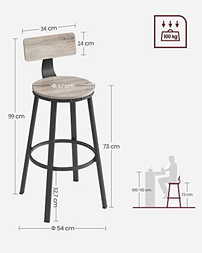 Set 2 scaune de bar Vasagle Negru-Ivoar 99x54x54 cm