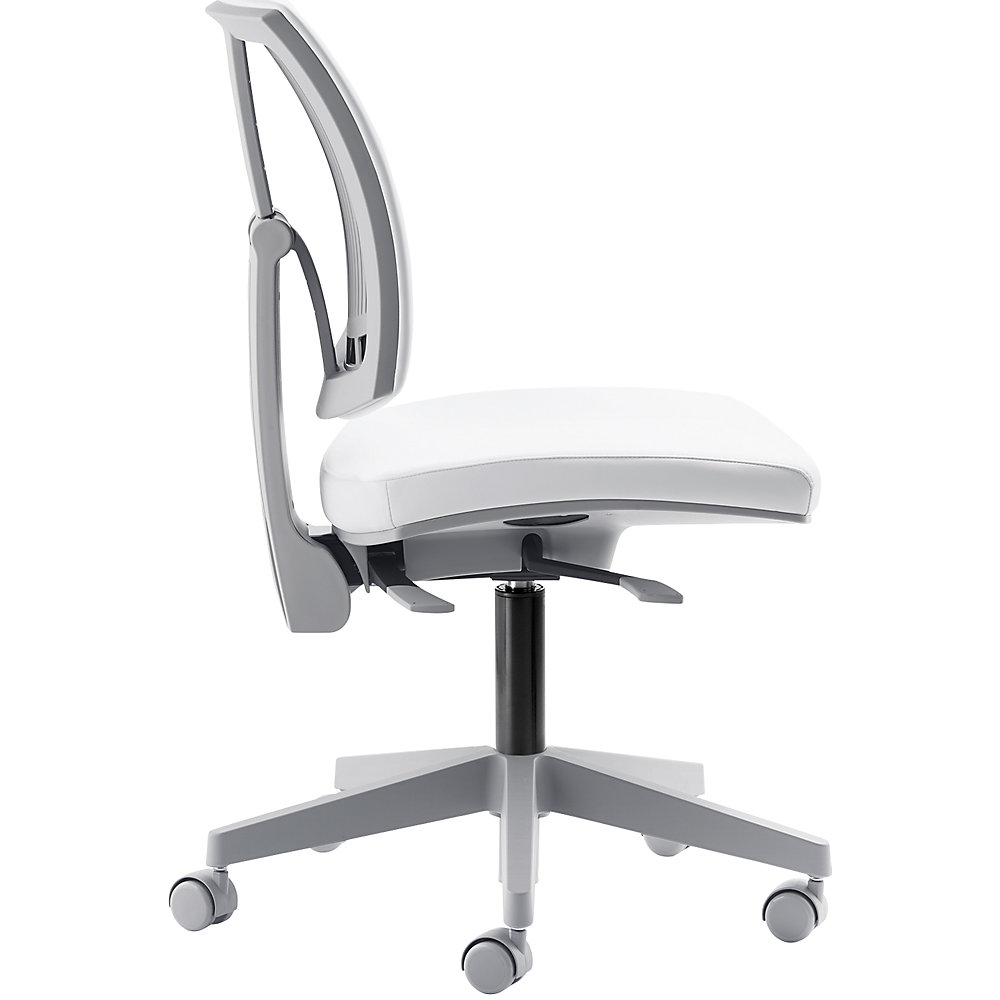 Scaunul rotativ cu spătar pătrat de la Mayer este elegant și confortabil. Baza în formă de cruce din plastic gri îi oferă stabilitate, în timp ce pielea sintetică albă adaugă un aspect modern și curat. Perfect pentru biroul dumneavoastră!