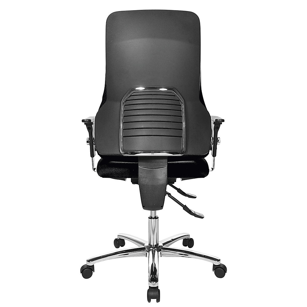 Scaunul rotativ pentru operator cu cotiere de la brandul Topstar are un spătar înalt de 600 mm și tapițerie neagră pentru un aspect elegant și confort maxim în timpul orelor lungi petrecute la birou.
