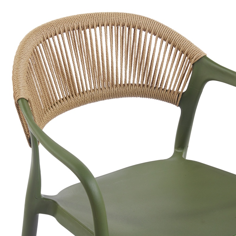 Scaunul Ankara Verde 54x55.5x77 cm oferă confort și durabilitate pentru exterior. Fabricat din polipropilenă de înaltă densitate, acest scaun rezistent la impact este ideal pentru utilizare în aer liber. Spătarul din Plastic PE cu aspect de rattan adaugă un aer modern, fiind și rezistent la intemperii. Forma ergonomică și înălțimea de 45 cm asigură confortul necesar pentru șederi prelungite. Scaunul este stivuibil, facilitând depozitarea, și suportă o greutate de până la 120 kg. Ușor de întreținut, se curăță simplu cu săpun și apă. Comandă acum pentru un exterior elegant și funcțional!