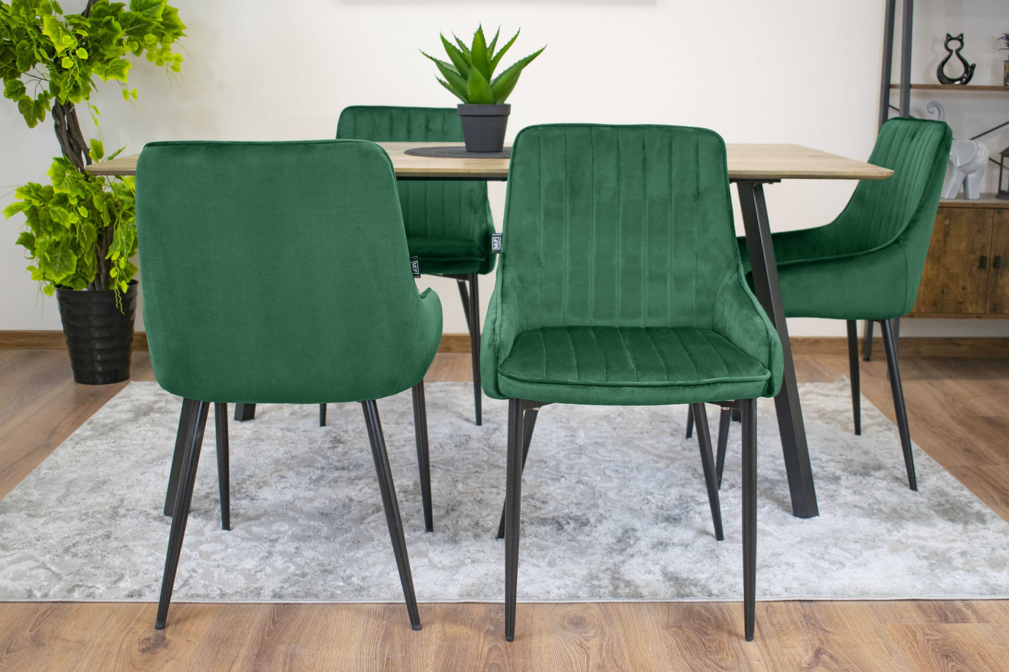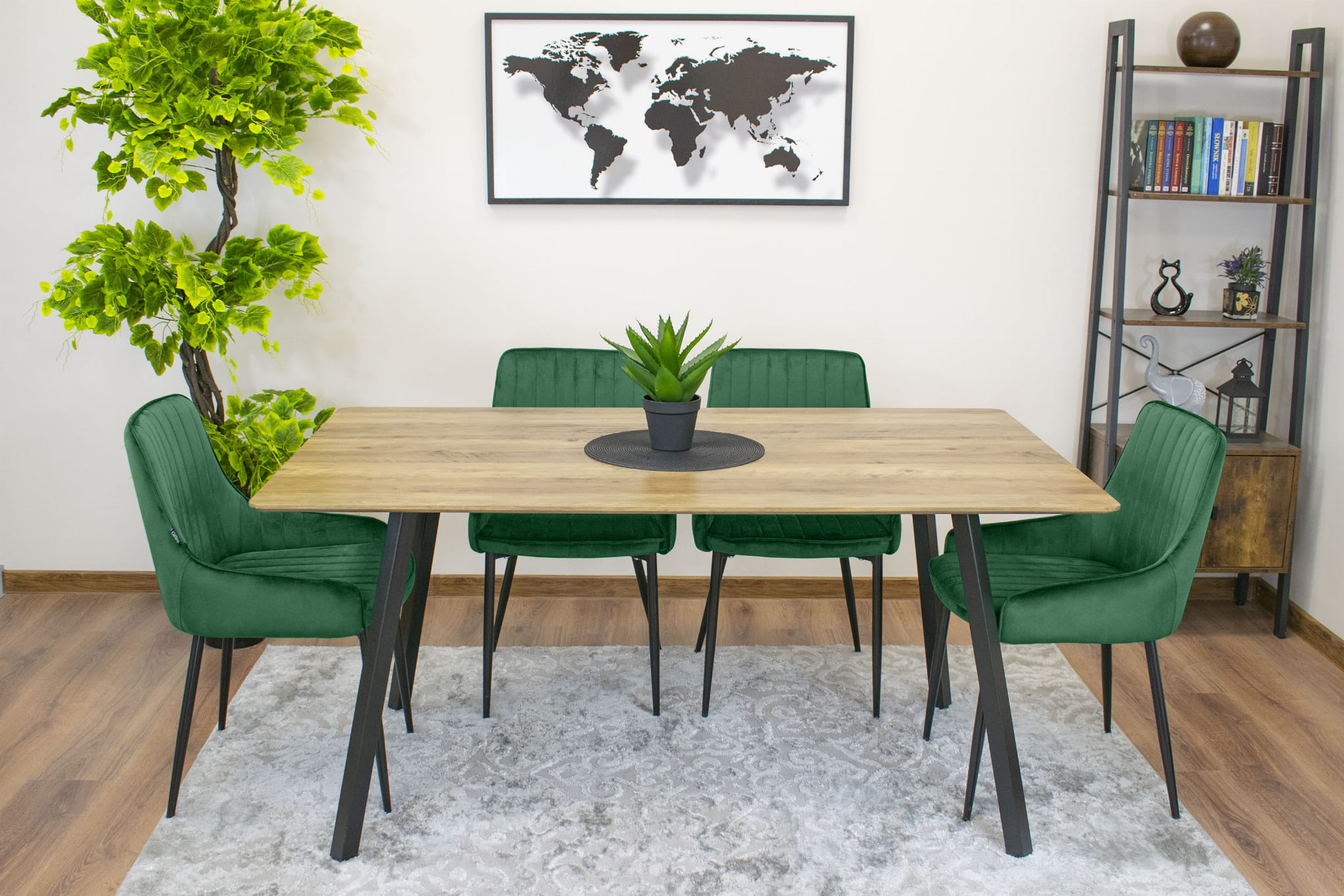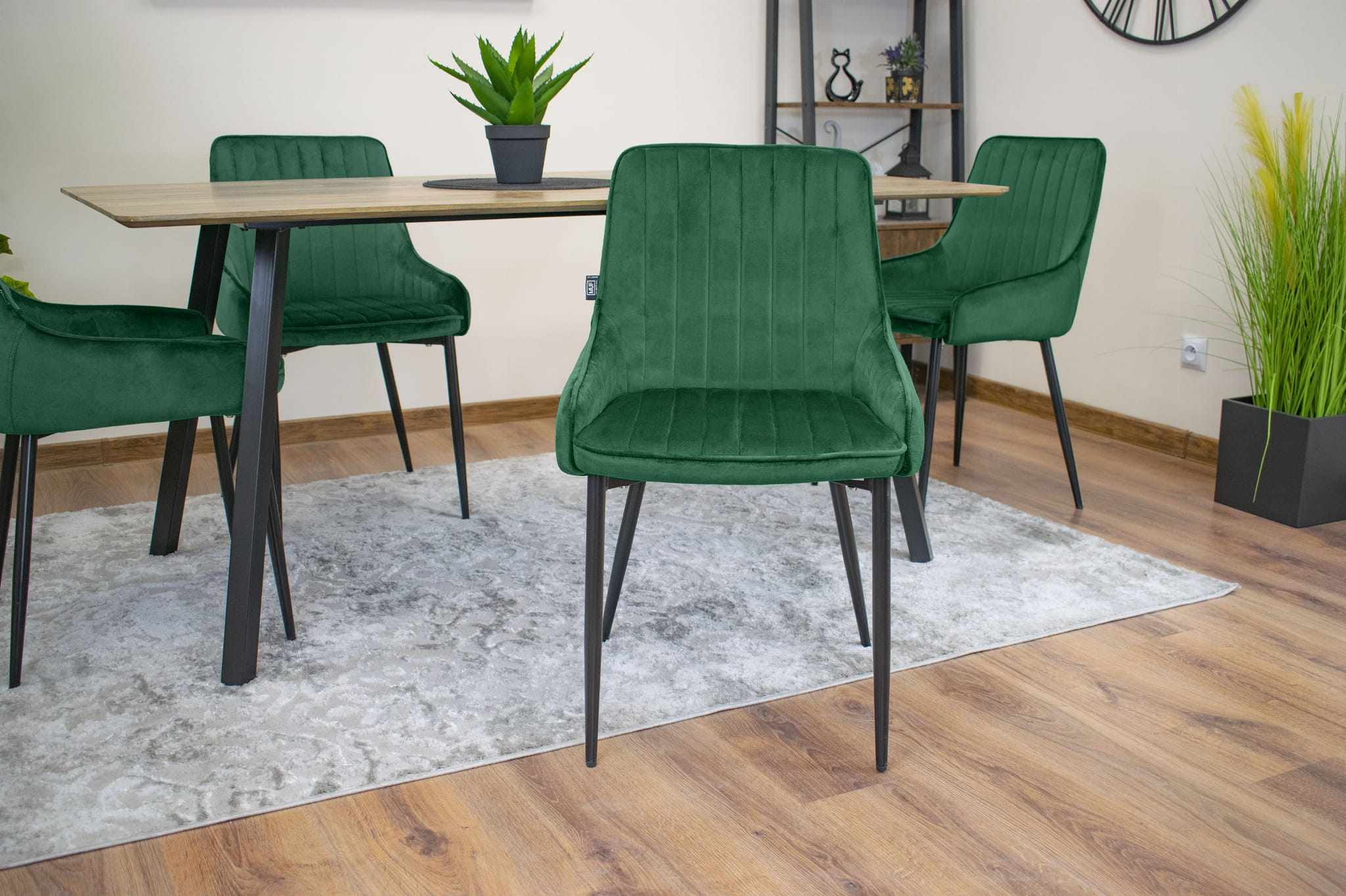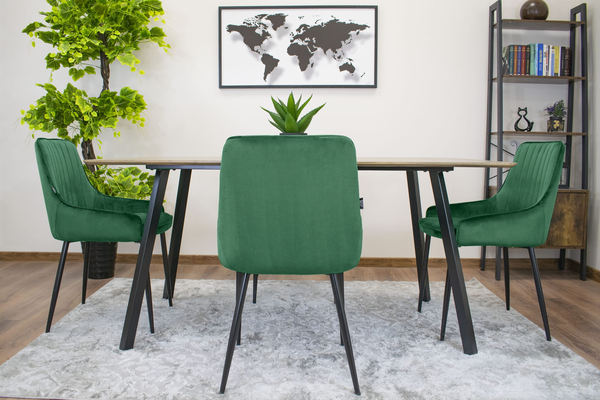 Scaunul de catifea MONZA verde este realizat din material textil de culoare verde si metal negru mat. Cu dimensiuni de 49x58x82,5 cm si o greutate suportata de 120 kg, acest scaun se potriveste perfect intr-un decor de inspiratie scandinava. Cu un design simplu si luminos, acest scaun va aduce natura nordica in interiorul casei tale, fiind usor de integrat in decorul camerei de zi sau a sufrageriei. Alege acest scaun pentru a crea o atmosfera relaxanta si eleganta in casa ta!