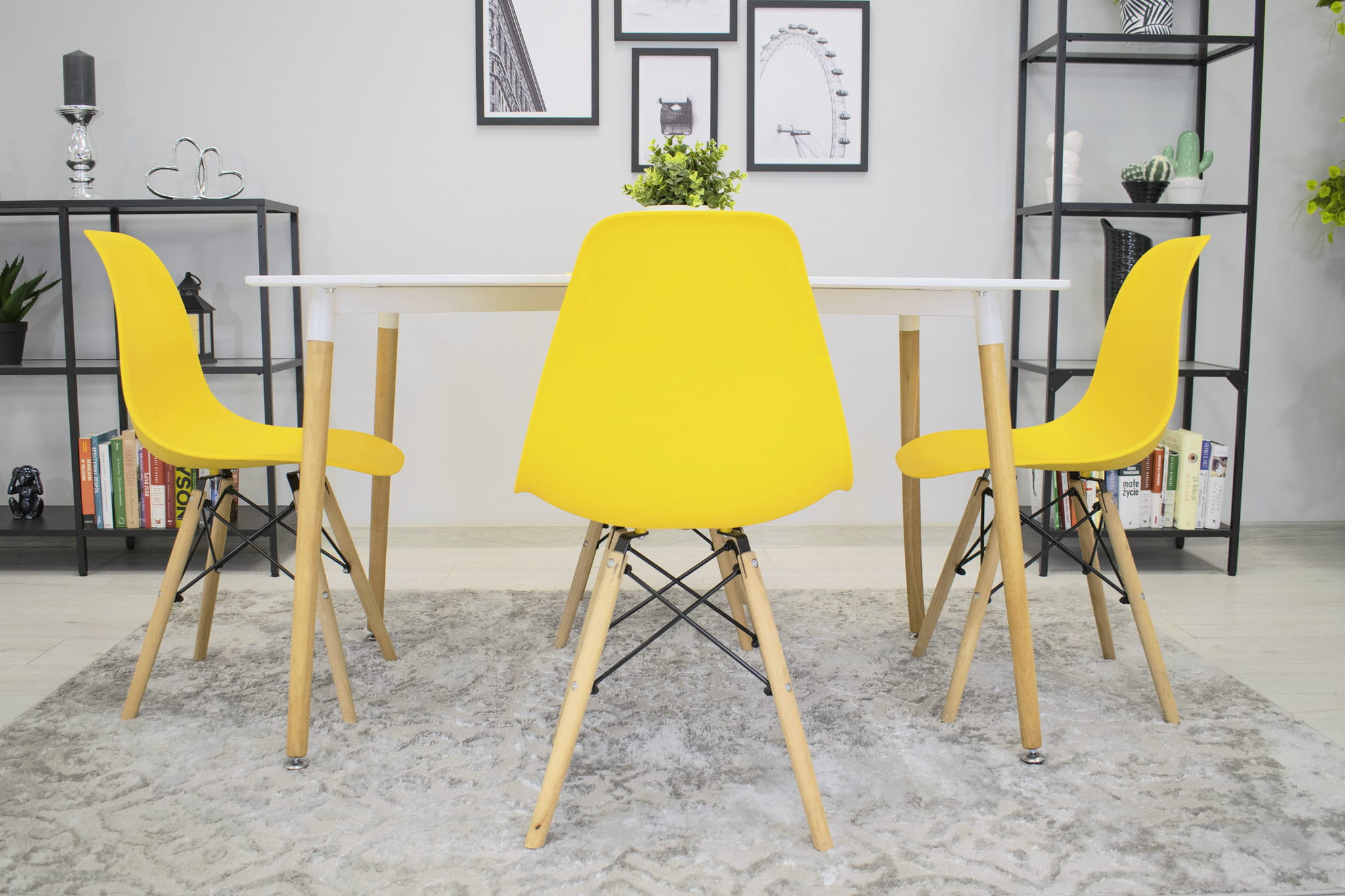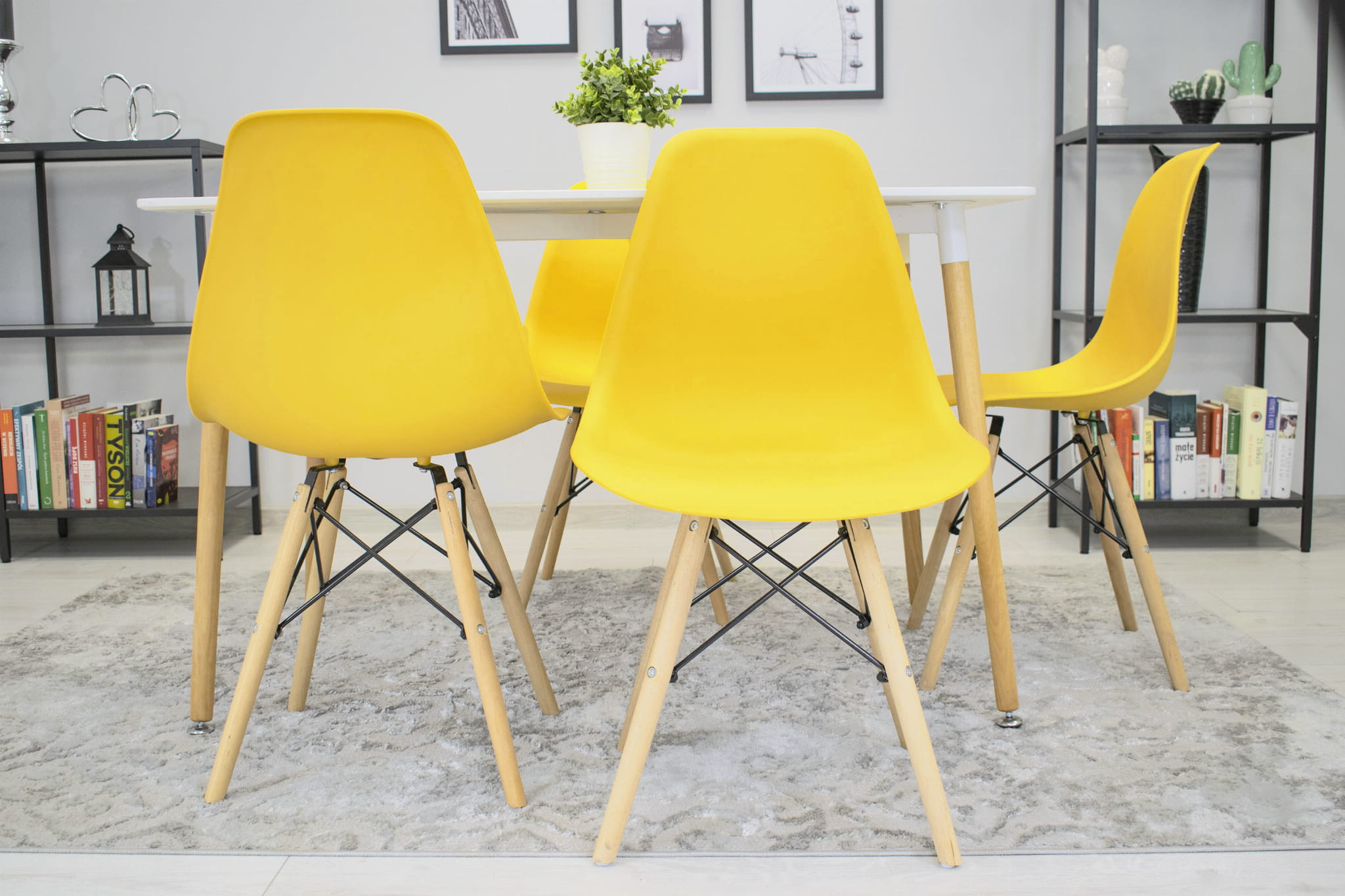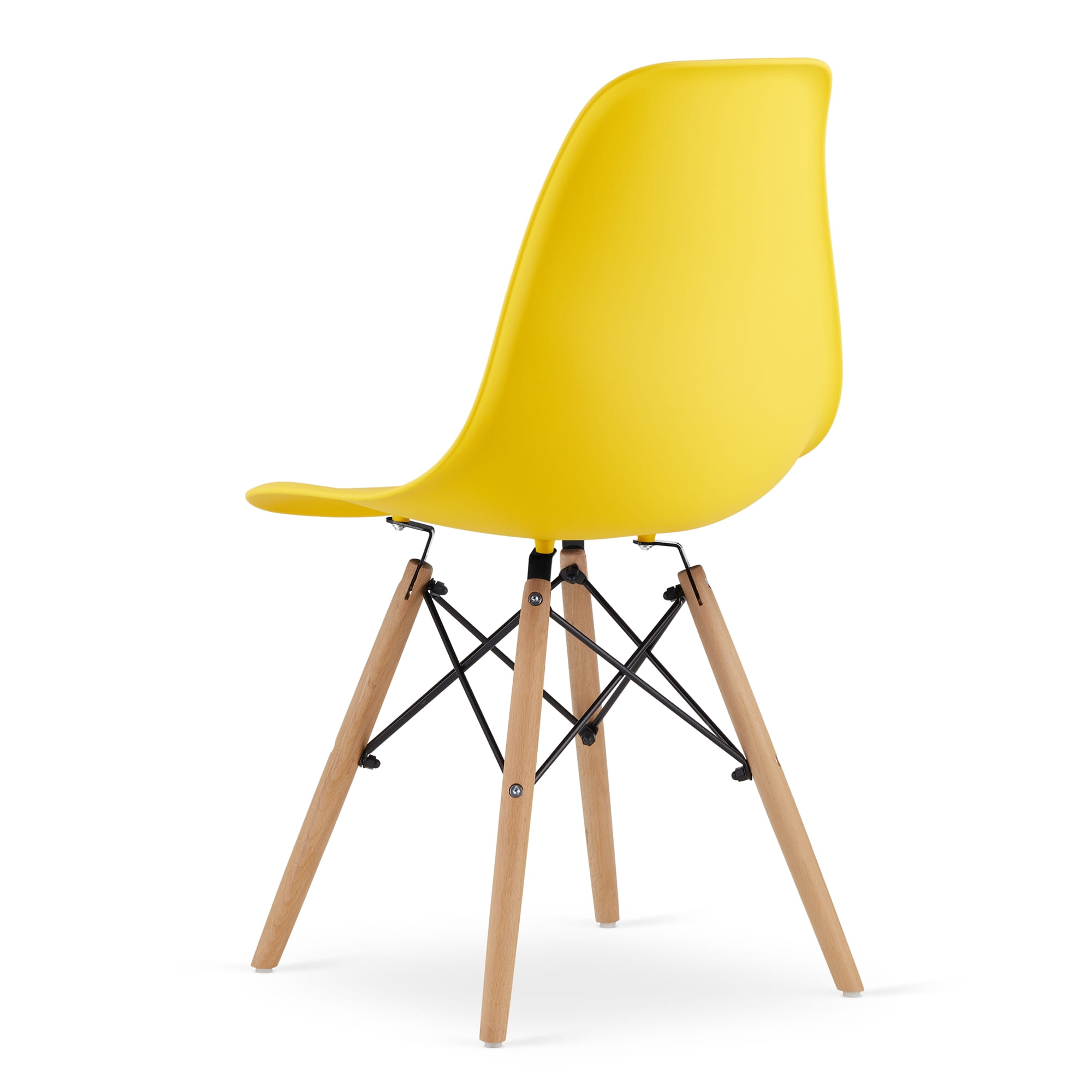Scaunul de masă galben OSAKA aduce un strop de culoare în orice spațiu. Construit dintr-o combinație de plastic galben, lemn de fag și metal negru, acest scaun îmbină stilul tradițional scandinav cu un aspect modern. Dimensiunile sale sunt: lățime 46 cm, adâncime 54 cm, înălțime 81 cm, iar înălțimea șezutului este de 44 cm, având o capacitate de susținere de până la 120 kg. Livrat dezasamblat, OSAKA se integrează perfect în decorul tău, fiind ideal pentru întâlniri plăcute cu familia sau prietenii.