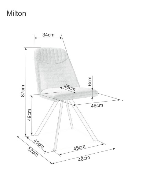 Scaunul de masă MILTON, de culoare gri, aduce un plus de stil și confort în orice spațiu. Construit dintr-o combinație de pânză textilă de calitate și metal, acest scaun robust oferă suport optim, având o greutate maximă susținută de 110 kg. Dimensiunile sale bine gândite, cu o lățime de 46 cm, adâncime de 45 cm și o înălțime de 87 cm, îl fac potrivit pentru diverse tipuri de mese. Înălțimea șezutului de 49 cm asigură o experiență plăcută și relaxantă, perfectă pentru momentele petrecute alături de familie și prieteni.