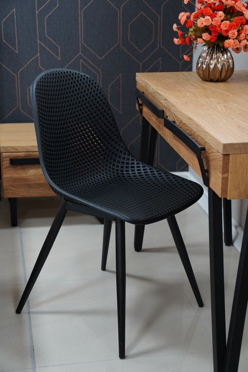 Scaunul de masă ADRIA, într-o elegantă nuanță de negru, este realizat din materiale de calitate superioară, îmbinând plasticul cu oțelul satinat pentru un aspect modern și durabil. Cu dimensiuni perfecte pentru orice spațiu, are lățimea de 46 cm, adâncimea de 47 cm și înălțimea totală de 85 cm, iar înălțimea șezutului este de 43 cm, oferind confort optim. Designul său simplu și funcțional se integrează armonios în orice decor, fiind o alegere ideală pentru a completa zona de dining.