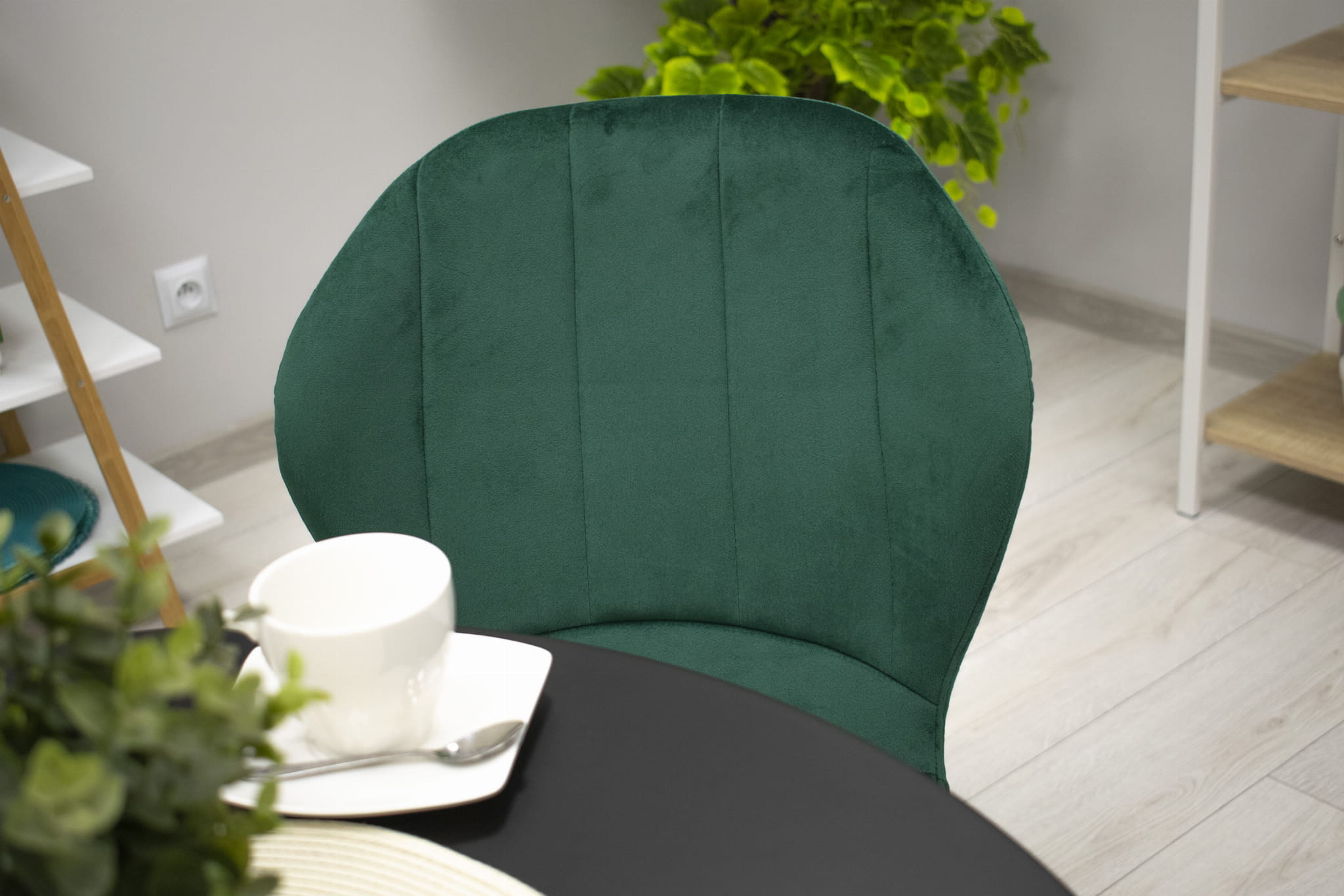 Scaunul de masă din catifea verde TERNI aduce un aer sofisticat și modern în orice interior. Cu o tesătură plăcută la atingere și o nuanță vibrantă de verde, acesta se remarcă prin picioarele negre mate, ce oferă stabilitate și un contrast elegant. Dimensiunile sale, cu o lățime de 50,5 cm și o înălțime de 86 cm, îl fac ideal pentru momentele de relaxare. Datorită capacității de încărcare de 120 kg, este atât funcțional, cât și durabil. Designul său minimalist și cusăturile simple se integrează perfect în orice sufragerie inspirată din stilul scandinav, aducând un plus de rafinament și confort.