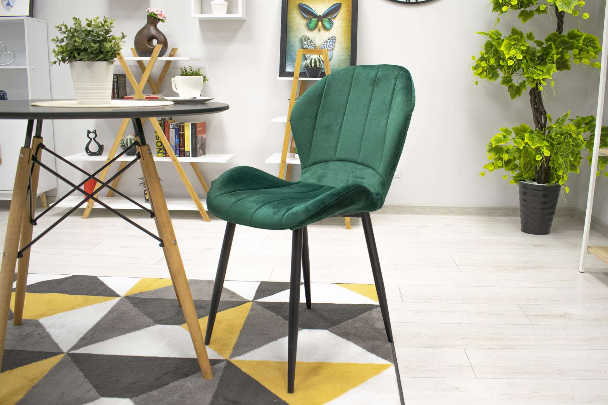 Scaun de masa din catifea verde cu picioare negre TERNI
