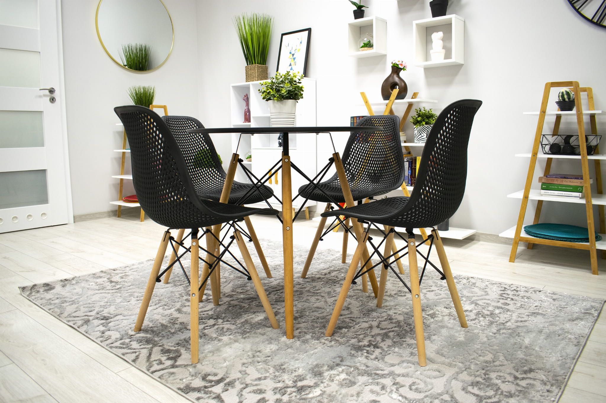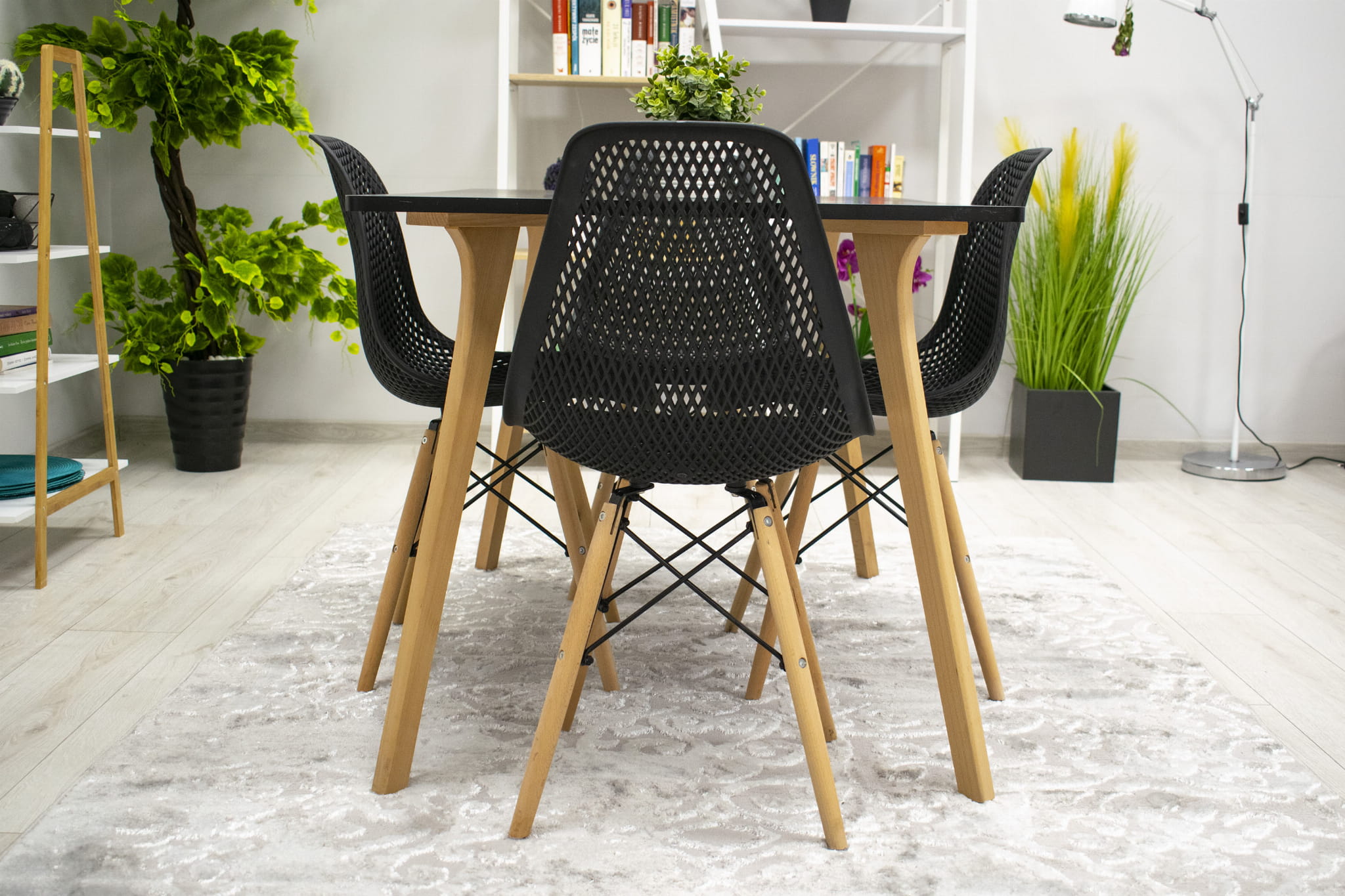 Scaunul de masă negru TROY îmbină elegant stilul tradițional scandinav cu un design modern. Realizat din plastic negru, lemn de fag și metal, acest scaun se remarcă prin picioarele din lemn masiv și șezutul confortabil. Dimensiunile sale, cu o lățime de 44,5 cm și o înălțime de 82,5 cm, îl fac potrivit pentru orice masă, iar greutatea maximă suportată de 100 kg îl face durabil și practic. Adăugați o notă îndrăzneață și un sentiment de lejeritate în sala de mese, combinând scaune de diferite culori pentru momente plăcute alături de cei dragi.