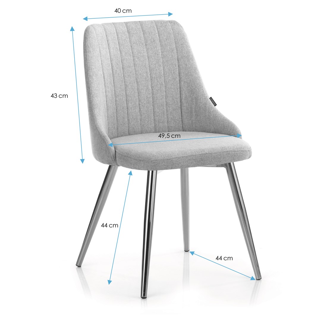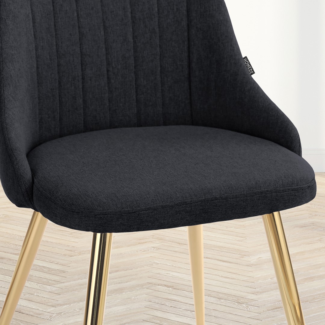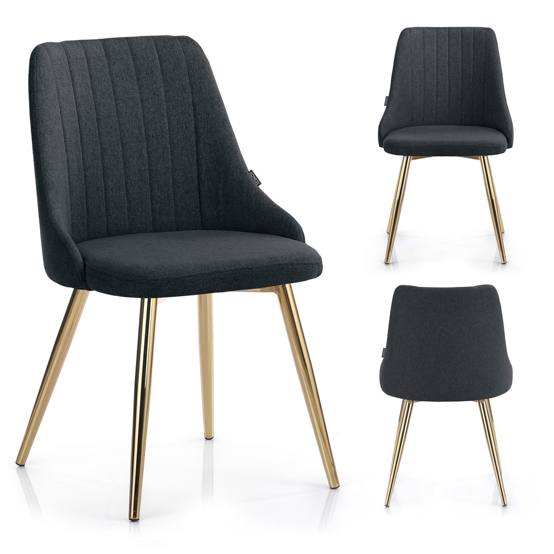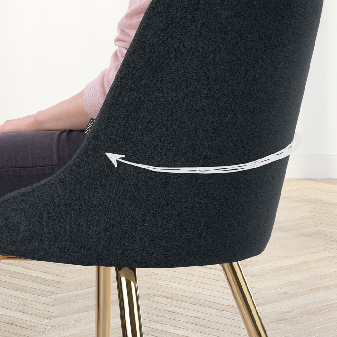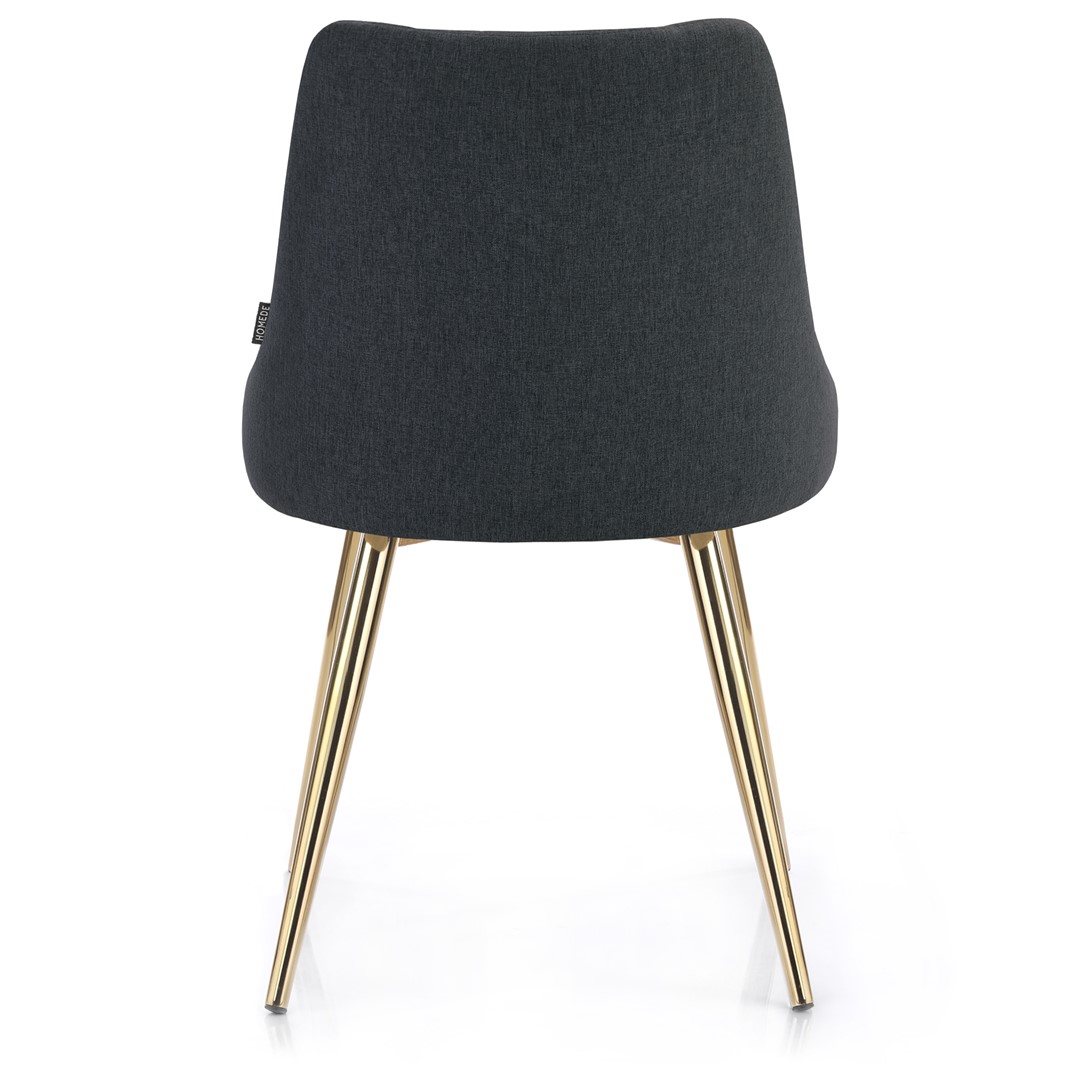 Scaunul de sufragerie BECKERTI, în nuanță de gri închis, îmbină confortul și eleganța. Confecționat dintr-o țesătură din 100% poliester, acesta oferă o experiență plăcută la utilizare, fiind ușor de întreținut. Accentele metalice aurii adaugă un strop de rafinament, transformându-l într-un element de decor atrăgător. Cu dimensiuni bine gândite—lățimea șezutului de 49,5 cm și înălțimea totală de 87 cm—acest scaun se integrează perfect în orice spațiu, oferind un suport ergonomic datorită spătarului său de 43 cm.
