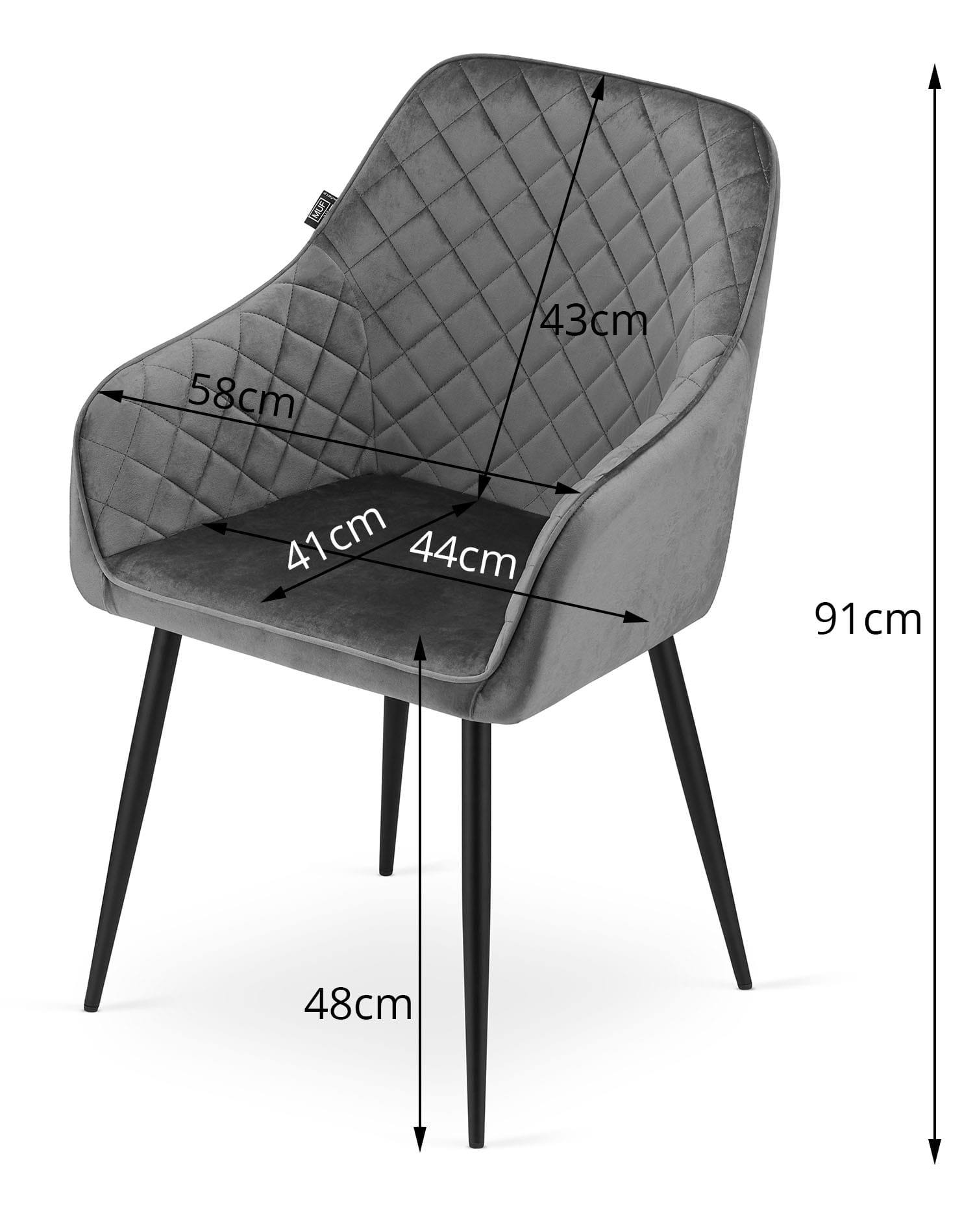 Scaunul de sufragerie din catifea NUGAT, de culoare neagră, îmbină eleganța cu confortul. Fabricat din țesătură de catifea de înaltă calitate și o structură din oțel satinat, acest scaun oferă un suport de până la 120 kg. Dimensiunile sale sunt perfecte pentru a se integra în orice spațiu: lățime de 58 cm, adâncime de 54,5 cm, iar înălțimea totală de 91 cm asigură o experiență plăcută. Cu un șezut confortabil, cu o lățime variabilă între 33 și 44 cm și o adâncime de 41 cm, este alegerea ideală pentru momentele de relaxare și socializare.