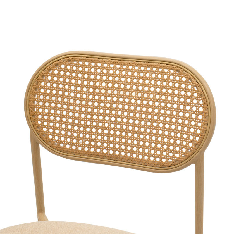 Scaun James plastic material textil ratan bej - metal culoare lemn natural