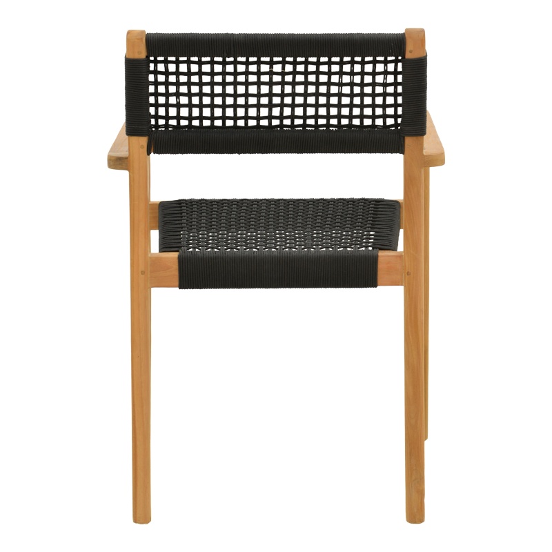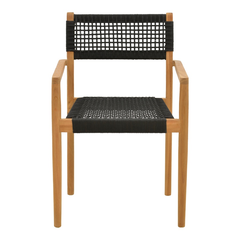 Scaunul Lengan Negru 54x52x80 cm îmbină eleganța lemnului natural cu accente moderne și rustice. Fabricat din lemn teak de înaltă calitate, cunoscut pentru rezistența sa la umiditate, fiecare scaun este unic. Șezutul și spătarul sunt împletite manual cu corzi PE negre, oferind o soluție durabilă și aerisită care adaugă textură vizuală. Dimensiunile sale compacte îl fac ideal pentru diverse spații, asigurând un confort optim datorită adaptabilității formei corpului. Descoperiți un mix perfect de stil și funcționalitate cu scaunul Lengan.