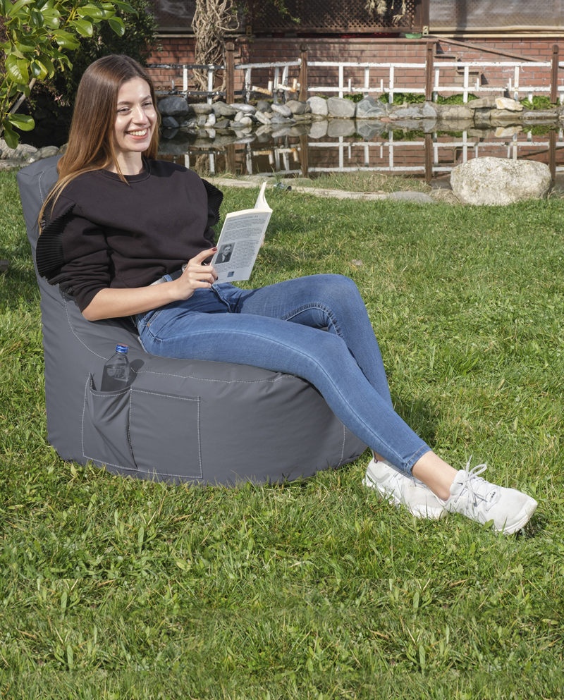 100% polistiren reciclat de înalta densitate Tesatura: 100% poliester Impermeabil Latime sezut: 70 cm Inaltime spate: 80 cm Inaltime sezut: 35 cm Cu sistem de fermoar ascuns Necăptușit Număr de pachete: 1 65 x 90 x 60 cm / 3 kg (1 bucată)