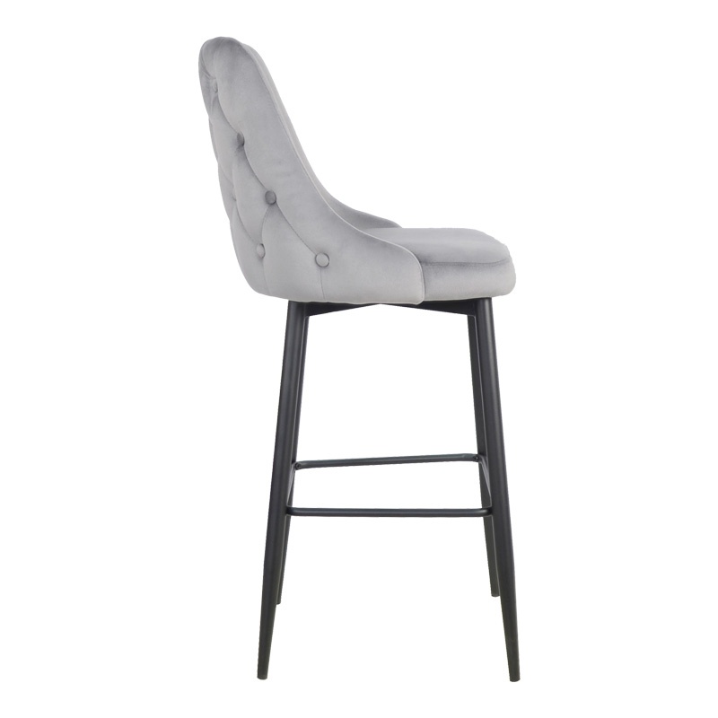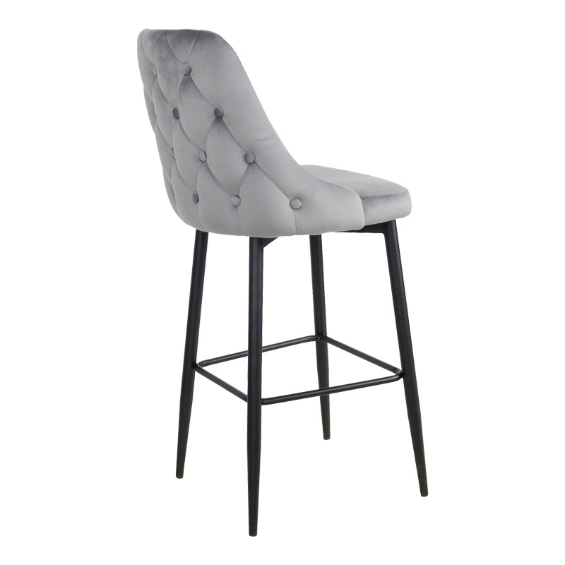 Scaun de bar Zedna Pako World Catifea Gri Picioare negre 52x57x111 cm