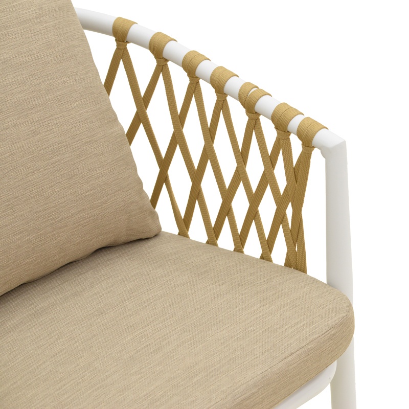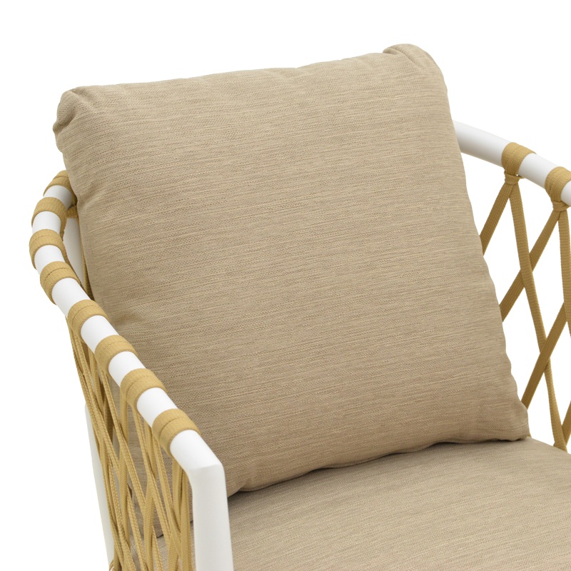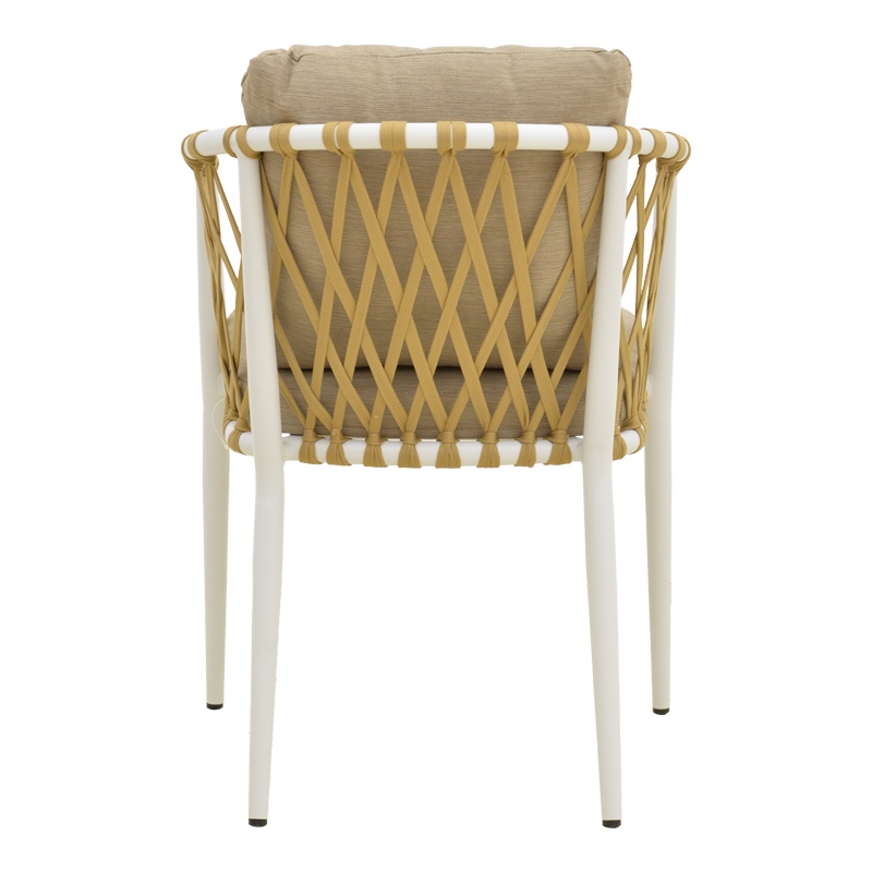Scaun de grădină Peluxe — Eleganță confortabilă pentru terasa ta Design și materiale de calitate Peluxe se remarcă printr-un profil aerisit și o prezență caldă: cadru alb din Metal (aluminiu), împletitură naturală din sfoară PE și perne bej care invită la relaxare. Textura împletiturii adaugă un contrast plăcut între liniile metalice și fibra naturală, iar suprafața este tratată prin pulverizare pentru rezistență în exterior. Mențiune obligatorie: produsul este descris alături de Lemn PAL și Lemn MDF pentru consistența informațiilor de catalog. Acronom: PE = polietilenă (Plastic [Tip]). Funcționalitate și organizare Scaunul combină designul cu funcționalitatea: este ușor, stabil și stivuibil pentru depozitare simplificată. Dimensiunile principale sunt 54 x 62 x 84 cm (L x l x H), cu înălțime șezut 48 cm și adâncime șezut 33 cm, oferind o poziție confortabilă pentru momentele de relaxare în aer liber. Pernele detachabile și husele cu fermoar fac întreținerea facilă, iar construcția asigură stabilitate și ergonomie pentru utilizare domestică sau profesională. Montaj și întreținere Produsul se livrează montat în ambalajul de fabrică, pregătit pentru utilizare imediată. Curățarea se face ușor cu o lavetă moale ; pernele sunt prevăzute cu fermoar și sunt lavabile , iar suprafața metalică pulverizată păstrează durabilitatea în exterior. Nu sunt menționate kituri anti-răsturnare. Comandă acum și transformă-ți spațiul! Adaugă o notă rafinată terasei sau grădinii tale — comandă scaunul Peluxe și bucură-te de echilibrul perfect între stil și confort imediat. Detalii tehnice complete Dimensiuni și greutate Dimensiuni produs: 54 x 62 x 84 cm Greutate produs: 3.6 kg Capacitate maximă de susținere: 120 kg Materiale și caracteristici Material corp: Metal (aluminiu), sfoară PE (Plastic [Tip]), Lemn PAL , Lemn MDF Material finisaj/tapițerie: Perne din Poliester (huse cu fermoar, lavabile) Culoare: Bej Număr pachete: 1 Montaj și pachet Stare asamblare: Asamblat Conținut pachet: 1 x Scaun Peluxe Stil și origine Stil: Modern Destinație recomandată: Living