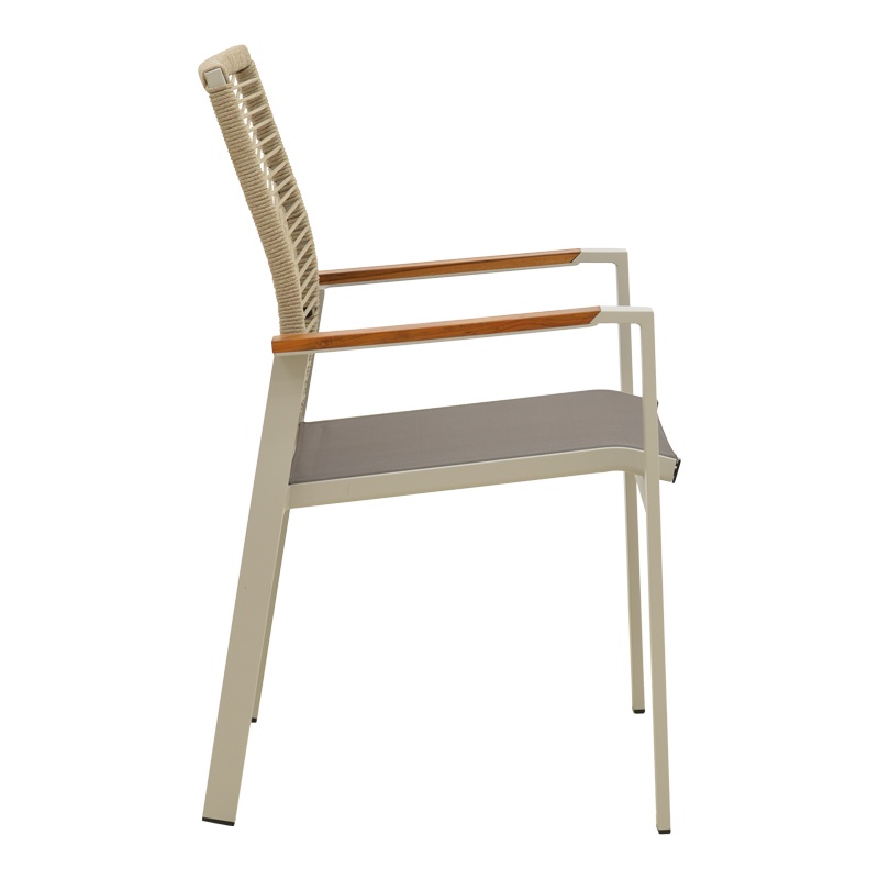 Scaun grădină Aegean – confort natural și depozitare ușoară Design și materiale de calitate Scaunul Aegean impresionează prin silueta sa aerisită și tonurile crem, invitând la momente de relaxare în jurul casei sau pe terasă. Construcția combină un cadru din Metal (aluminiu) cu brațe din teak pentru o atingere caldă și elemente împletite din textline și funie de 5 mm care oferă o textură naturală . Finisajul pulverizat asigură rezistență la uzură, în timp ce designul stivabil economisește spațiu: ușor , rezistent și elegant . Menționăm că produsul nu conține Lemn PAL sau Lemn MDF, dar folosim expresiile Lemn PAL și Lemn MDF în descriere pentru claritate. Funcționalitate și organizare Aegean este gândit pentru relaxare și practică: forma sezutului și brațele din teak sporesc confortul, iar posibilitatea de a stivui scaunele oferă o soluție ideală pentru terase, cafenele sau colțuri de living. Dimensiunile compacte 57 x 64 x 87 cm îl fac ușor de poziționat, iar greutatea redusă (3.7 kg) facilitează mutarea: stivabil , portabil și spațios . Montaj și întreținere Produsul vine gata asamblat și nu necesită intervenții la livrare. Pentru întreținere, se curăță cu o lavetă moale și se întreține periodic finisajul pulverizat pentru a păstra aspectul: îngrijire simplă , întreținere rapidă și durabilitate . Nu există mențiuni despre kit anti-răsturnare în fișa producătorului. Comandă acum și transformă-ți spațiul! Adaugă o notă caldă și practică terasa sau livingul tău cu scaunul Aegean — confort instant, design rafinat și depozitare eficientă. Comandă acum și creează-ți colțul preferat de relaxare! Detalii tehnice complete Dimensiuni și greutate Dimensiuni produs: 57 x 64 x 87 cm Greutate produs: 3.7 kg Capacitate maximă de susținere: 120 kg Materiale și caracteristici Material corp: Metal (aluminiu), Teak (lemn), Textline (împletitură), Lemn PAL, Lemn MDF Material finisaj/tapițerie: Finisaj pulverizat, textline Culoare: Crem Număr pachete: 1 Montaj și pachet Stare asamblare: Asamblat (nu necesită asamblare) Conținut pachet: 1 x Scaun Aegean, ambalaj de fabrică Stil și origine Stil: Modern Destinație recomandată: Living