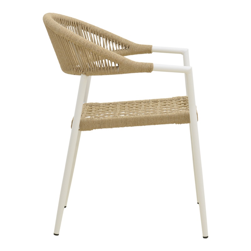 Scaun de grădină Ammos — Ușor, ergonomic și stivabil pentru relaxare instantă Design și materiale de calitate Profilul Ammos spune o poveste de simplitate modernă: un spătar elegant, o linie aerisită și textura caldă a frânghiei naturale care adaugă senzația unei îmbrățișări. Cadru din Metal (aluminiu ușor) cu finisaj protejat prin pulverizare și frânghie manual țesută din PE (polietilenă) în nuanță naturală creează un contrast sofisticat ce poate fi asortat cu piese din Lemn PAL sau Lemn MDF . Ușor de mutat , stil contemporan și textură tactilă sunt elementele cheie ale acestui scaun, perfect pentru colțuri relaxante din casă sau pe terasă. Funcționalitate și organizare Ammos combină utilul cu plăcutul: forma ergonomică susține natural corpul, iar designul stivabil permite depozitare compactă când nu este folosit. Dimensiunile compacte (57 x 61 x 82 cm) îi conferă versatilitate — potrivește-l lângă o masă de dining, pe terasă sau în living pentru momente de odihnă. Ergonomie , mobilitate și stocare eficientă sunt conceptele care îl transformă dintr-un simplu scaun într-un element practic și estetic al amenajării tale. Montaj și întreținere Produsul nu necesită asamblare; vine gata pentru utilizare, livrat în ambalaj de fabrică. Curățarea este simplă: șterge suprafețele cu o lavetă moale și detergenti blânzi pentru a păstra textura frânghiei și finisajul metalic. Rezistență la uzură , întreținere facilă și utilizare imediată — tot ce îți trebuie pentru relaxare fără complicații. Comandă acum și transformă-ți spațiul! Adaugă o notă de rafinament și confort fiecărei încăperi: comandă scaunul Ammos și creează colțul tău preferat de relaxare, rapid și fără bătăi de cap. Detalii tehnice complete Dimensiuni și greutate Dimensiuni produs: 57 x 61 x 82 cm Greutate produs: 2.76 kg Capacitate maximă de susținere: 120 kg Materiale și caracteristici Material corp: Metal (aluminiu) Material finisaj/tapițerie: Frânghie manual țesută din PE (polietilenă), finisaj vopsea spray Culoare: Alb Număr pachete: 1 Se potrivește cu: Lemn PAL / Lemn MDF Montaj și pachet Stare asamblare: Nu necesită asamblare Conținut pachet: 1 x Scaun Ammos, ambalaj de fabrică Stil și origine Stil: Modern Destinație recomandată: Living