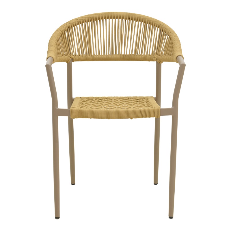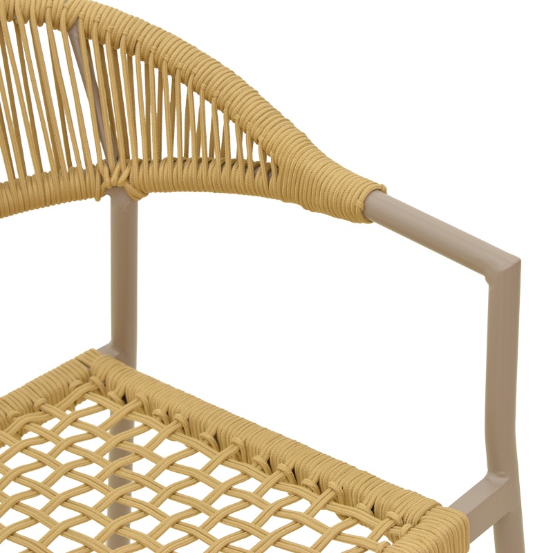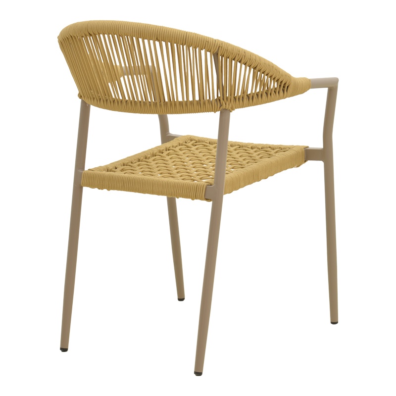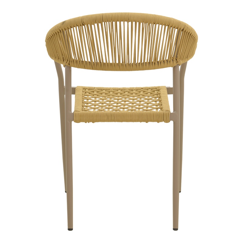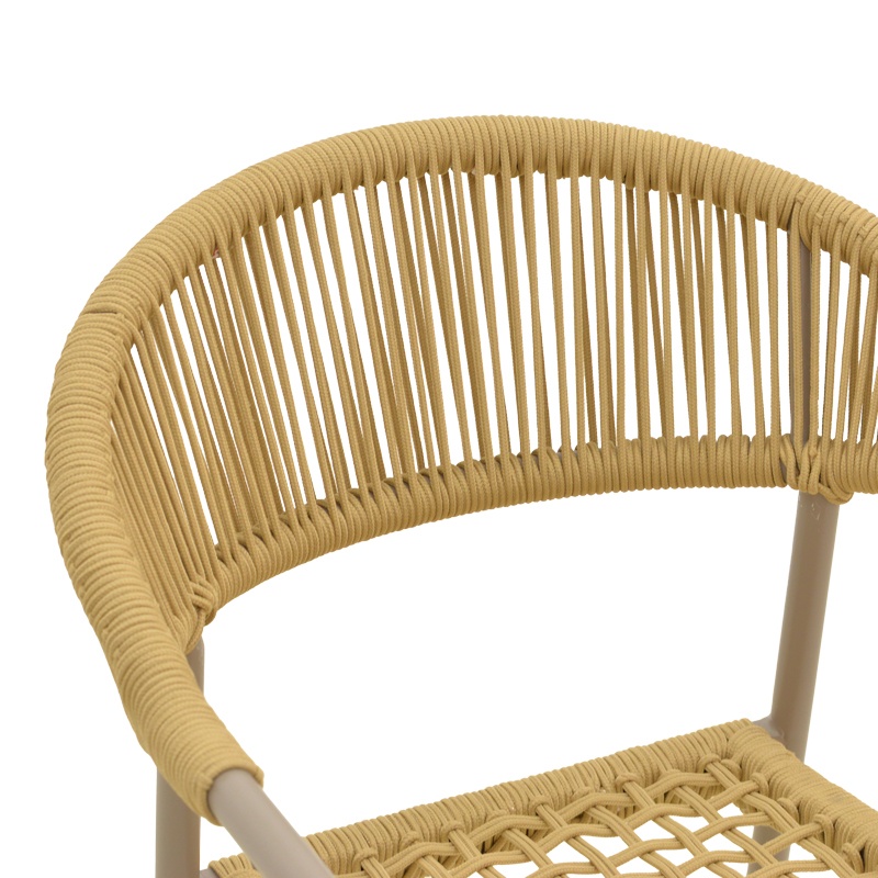 Scaun de grădină Ammos — Confort ergonomic și eleganță durabilă Design și materiale de calitate Scaunul Ammos îmbină o siluetă modernă cu accente naturale: un cadru metalic din aluminiu în finisaj mocha, un șnur împletit manual de 5 mm în nuanță naturală și o prezență vizuală caldă, potrivită atât pentru exterior, cât și pentru interior. În descriere menționăm și utilizarea frecventă a Lemn PAL și Lemn MDF în colecțiile noastre, pentru a evidenția compatibilitatea stilistică cu mobilierul din jur. Finisajul tratat prin pulverizare asigură o textură rafinată și o rezistență estetică de lungă durată. Funcționalitate și organizare Ammos rezolvă nevoia de flexibilitate: forma ergonomică a spătarului oferă un sprijin confortabil , designul stivuibil permite depozitare compactă, iar greutatea redusă face mutarea ușoară. Dimensiunile compacte (57 x 61 x 82 cm) îl recomandă pentru terase, livinguri sau zone de dining. Cu un accent pe ușurința utilizării și rezistența zilnică , acest scaun aduce stil și practică în orice colț. Montaj și întreținere Produsul vine gata de utilizare, nu necesită asamblare , iar întreținerea este simplă: se curăță cu o lavetă moale pentru a păstra textura împletiturii și a finisajului pulverizat. Stratului protector îi conferă rezistență la uzură și facilitează păstrarea aspectului original în timp. Comandă acum și transformă-ți spațiul! Adaugă scaunul Ammos în ambientul tău pentru un echilibru perfect între vizualul sofisticat și confortul de zi cu zi — ideal pentru momentele leneșe de relaxare sau seri cu prietenii. Detalii tehnice complete Dimensiuni și greutate Dimensiuni produs: 57 x 61 x 82 cm Greutate produs: 2.76 kg Capacitate maximă de susținere: 120 kg Materiale și caracteristici Material corp: Metal (Aluminiu Ø22x1.1mm), Șnur împletit manual 5 mm, Lemn PAL, Lemn MDF Material finisaj/tapițerie: Finisaj strat pulverizat (mocha) Culoare: Maro Număr pachete: 1 Montaj și pachet Stare asamblare: Neasamblat Conținut pachet: 1 x Scaun Ammos, Ambalaj de fabrică Stil și origine Stil: Modern Destinație recomandată: Living
