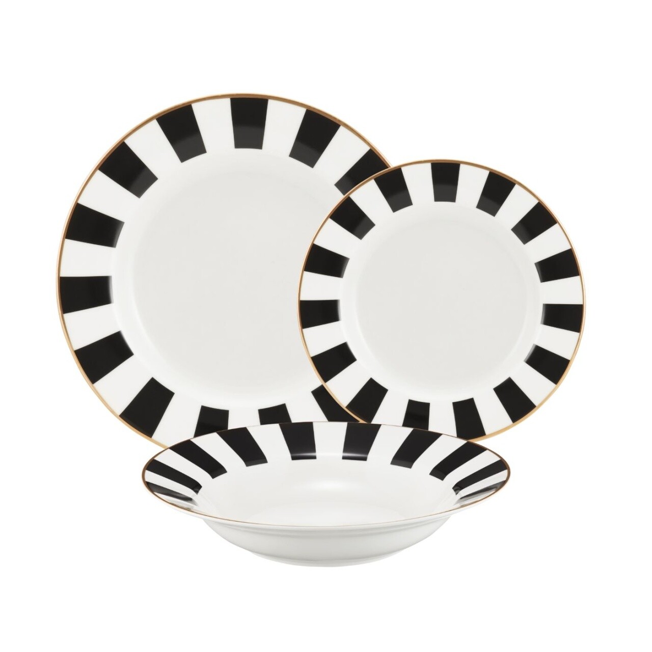 Serviciu de masa 18 piese Ribs Ambition portelan alb/negru