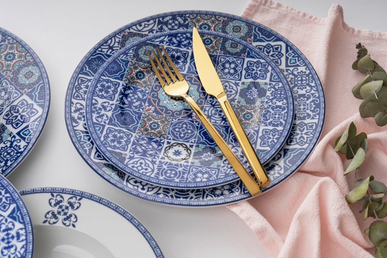 Serviciu de masa Rekitchen 513RKT1108 Portelan Farfurie intinsa 25 cm Bleumarin / Turcoaz / Negru / Roșu
