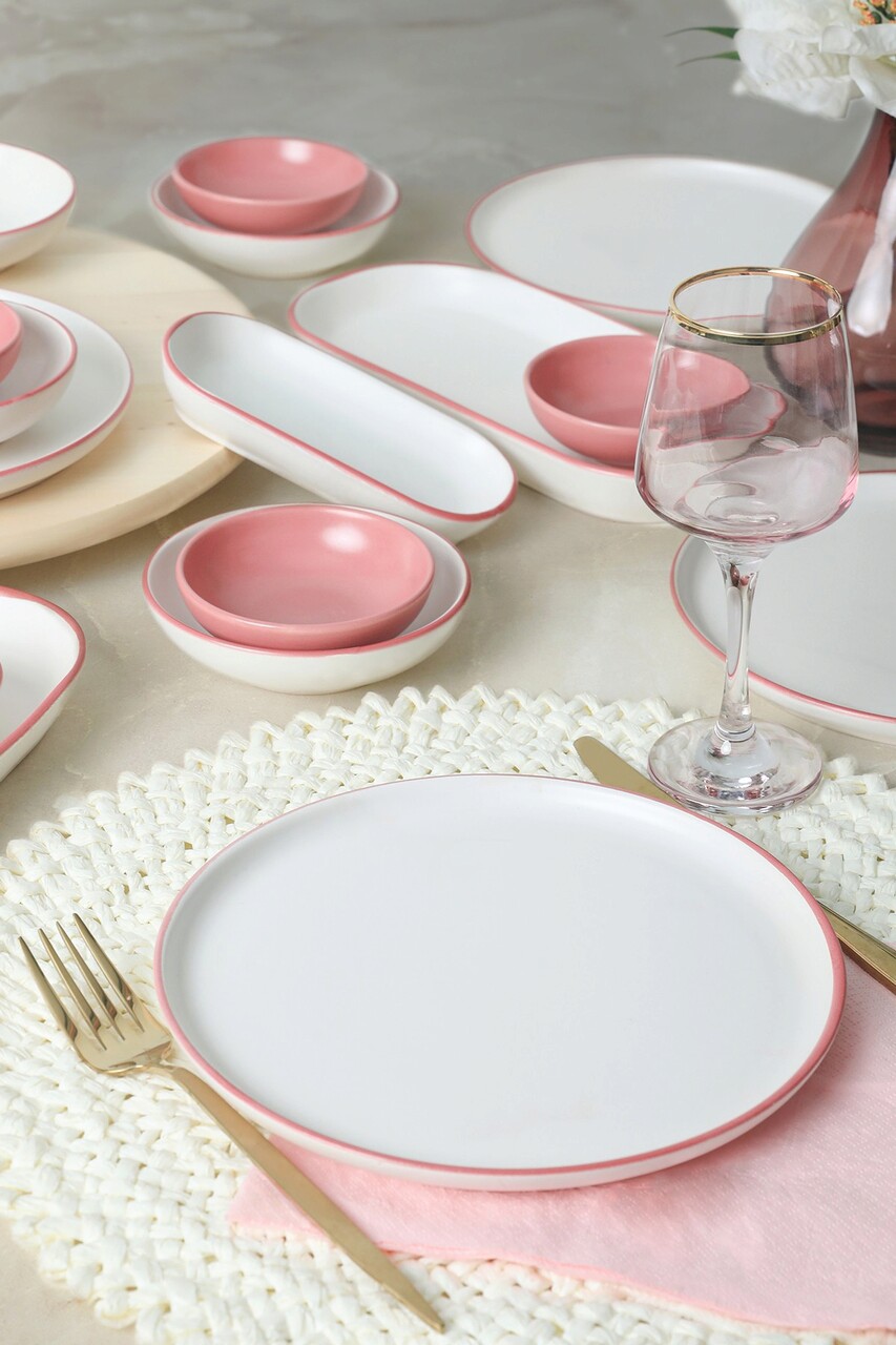 Set de mic dejun Keramika 275KRM1965 Ceramica Nu absoarbe apa Roz/Alb