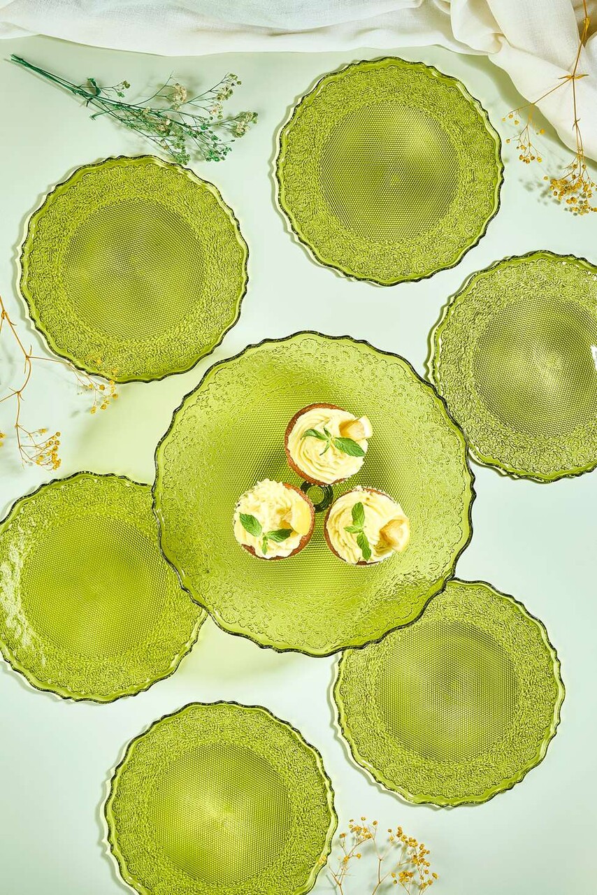 Set farfurii pentru desert (7 bucăți)Farfurie pentru desert: 21 cm (6 piese)Suport: 28 cm (1 piesa)