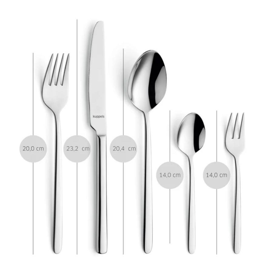 Setul de tacamuri inox 18/10 CUTE pentru 6 persoane, format din 30 de piese, îmbină eleganța cu funcționalitatea. Realizat de Amefa Stahlwaren GmbH, un lider în domeniul tacâmurilor de calitate superioară de peste 90 de ani, acest set se remarcă prin greutatea și grosimea optimă, precum și prin finisajele impecabile care asigură strălucirea și rezistența la zgârieturi. Designul său fin și curbele subtile aduc un aer sofisticat oricărei mese, de la mic dejun la cină. Alege CUTE pentru a transforma fiecare masă într-un moment special, plin de stil și rafinament.