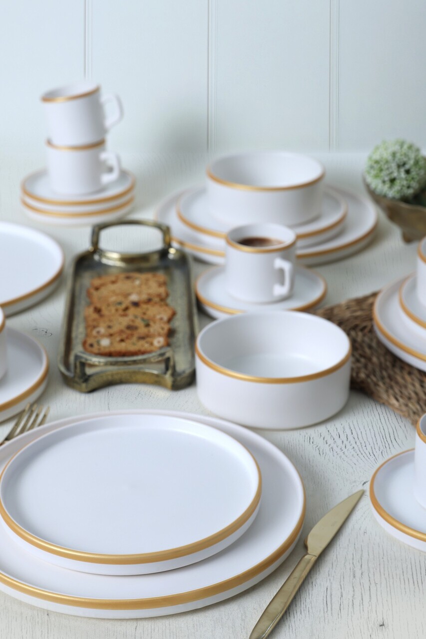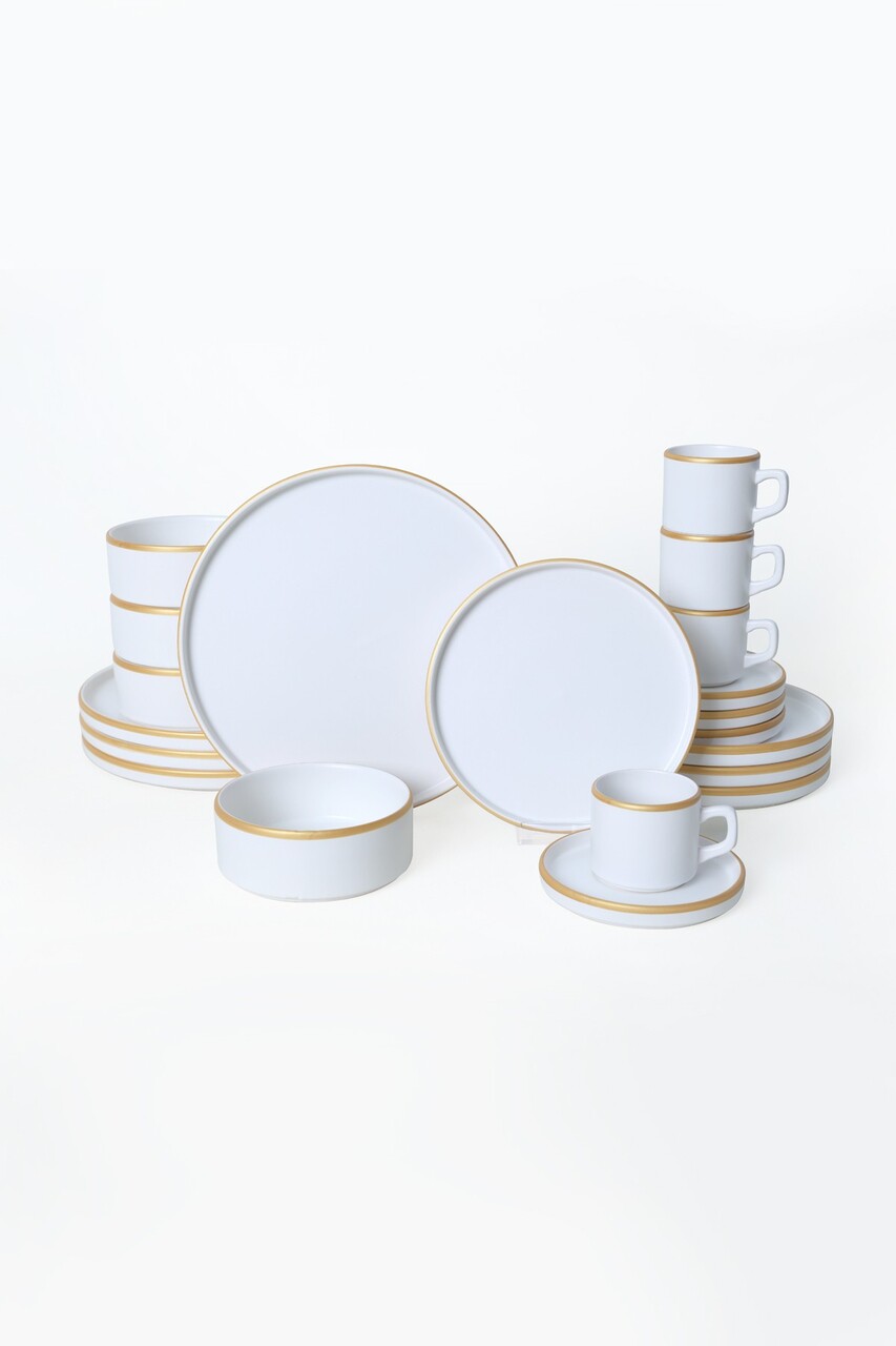 Serviciu de masa (20 de bucăți)Nu absoarbe apaAntibacterianUsor de curatatRezistenta la socuri termiceEco-FriendlyRezistenta la abraziuneFarfurie intinsa: 27 cm (4 piese)Bol: 14 cm / 520 ml (4 piese)Farfurie pentru desert: 21 cm (4 piese)Pahar de ceai: 8 cm / 184 ml (4 piese)Farfurie din sticla pentru ceai: 14 cm (4 piese)