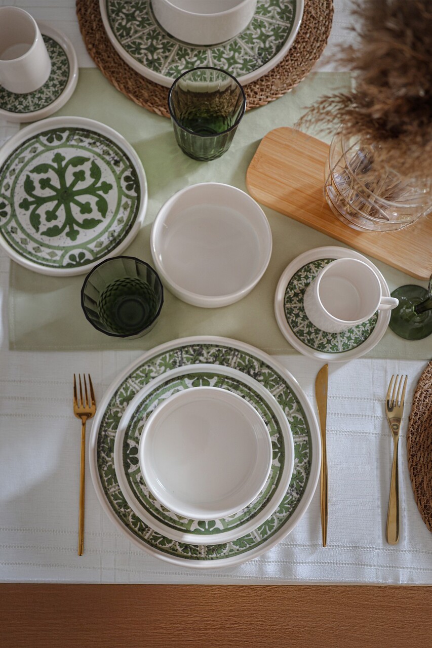 Serviciu de masa (20 de bucăți)Rezistenta la abraziuneEco-FriendlyAntibacterianUsor de curatatCeasca de ceai: 8 cm / 184 ml (4 piese)Farfurioara ceasca ceai: 14 cm (4 piese)Farfurie: 18 cm / 480 ml (6 piese)Farfurie intinsa: 27 cm (4 piese)Bol: 14 cm / 520 ml (4 piese)Farfurie pentru desert: 21 cm (4 piese)