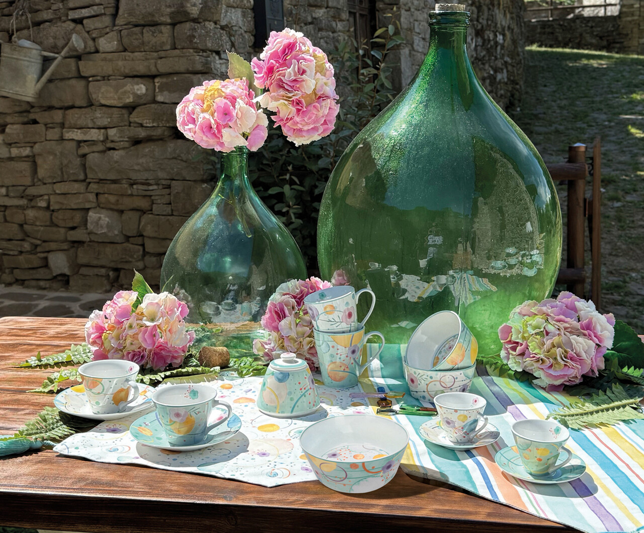 Set 2 cesti ceai cu farfurioare BollicineColectia Bollicine aduce prospetime si culoare in fiecare detaliu. Setul de 2 cesti pentru ceai cu farfurioare impresioneaza prin decorurile pline de viata si designul armonios, ce imbina simetria cu accentele dinamice.Realizate pentru a oferi o experienta placuta si eleganta, aceste cesti transforma fiecare moment de relaxare intr-un ritual plin de stil. Tonurile calde completeaza perfect atmosfera unei mese primitoare.O alegere ideala pentru iubitorii de design modern si detalii expresive, potrivita pentru orice sezon.MentiuniEste compatibil cu masina de spalat vase.Este compatibil cu cuptorul cu microunde.Set2 cesti cu capacitatea 200 ml;2 farfurii cu diametrul 15.5 cm.