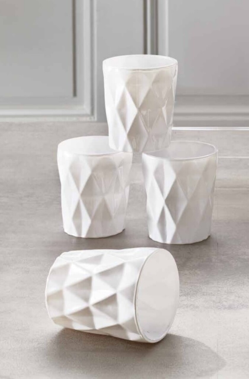 Set 6 pahare Iamante albNoua versiune a colectiei Iamante reinventeaza designul printr-o varianta total white, pastrand eleganta si calitatea superioara a sticlei. Albul stralucitor confera un aer sofisticat si versatil, usor de integrat in orice stil de amenajare.Suprafata este decorata cu mici romburi in relief, care adauga textura si dinamism vizual, transformand fiecare pahar intr-un element decorativ de efect. Setul contine 6 pahare, special concepute pentru a evidentia orice aranjare a mesei.O alegere ideala pentru o masa moderna, luminoasa si eleganta.MentiuniEste compatibil cu masina de spalat vase.Nu este compatibil cu cuptorul cu microunde.Set6 pahare cu dimensiunile D8x9.5 cm, capacitate 270 ml.