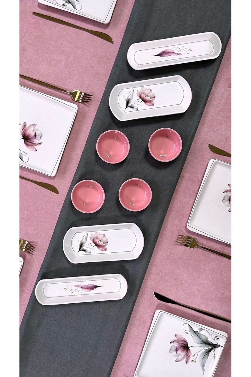 Set de mic dejun (14 piese)Farfurie intinsa: 20 x 20 cm (6 piese)Platou servire: 20 x 6 x 3 cm (2 piese)Platou mare: 15 x 12 x 3 cm (2 piese)Bol: 6 x 6 cm (4 piese)