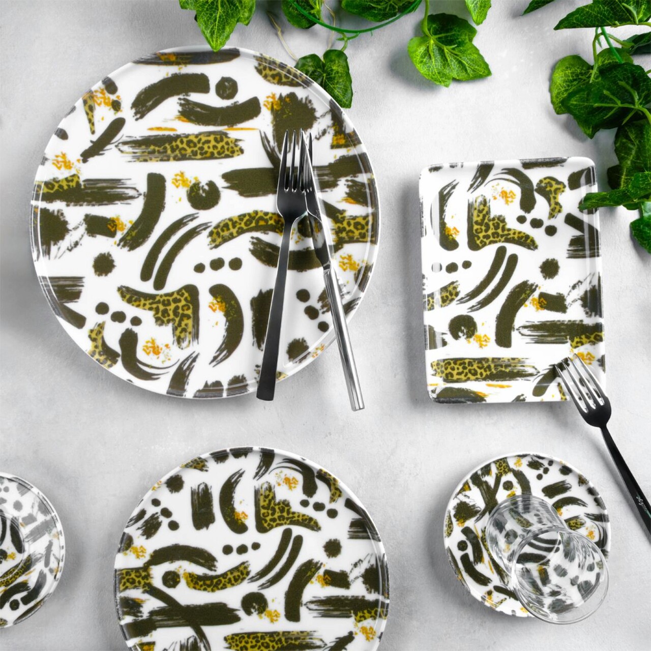Servicii de masă negre și complete - Farfurii pătrate sau rotunde?