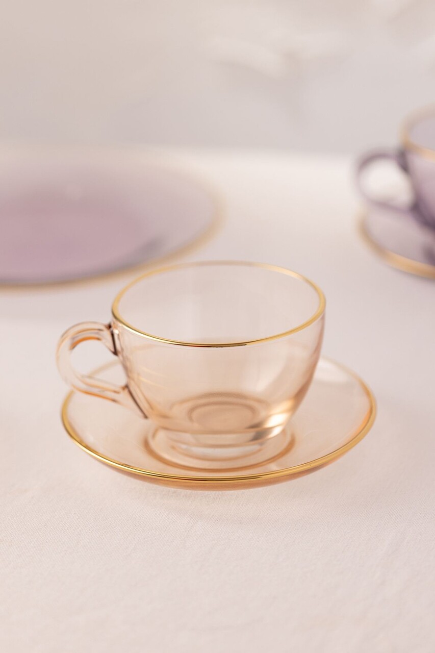 Set pentru ceai Hermia 127RKL1215 Farfurie: 91 x 91 x 64 cm (2 bucăți) Roz somon