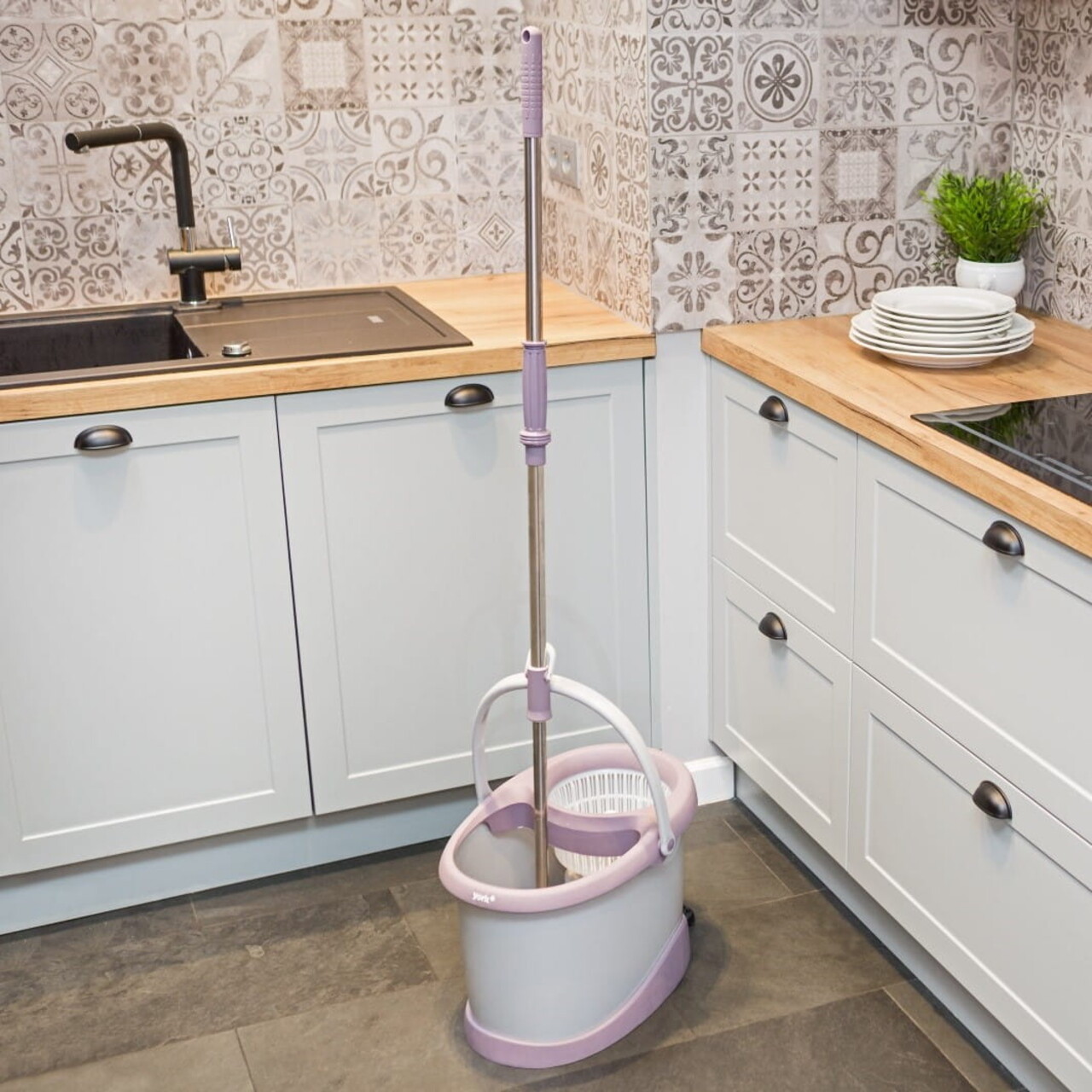 Mopul rotativ York Speed Max 7270 este soluția perfectă pentru o curățenie eficientă și confortabilă a pardoselilor. Acest kit inovator include o găleată cu sistem dublu pentru spălare și stoarcere, permițându-ți să cureți fără a-ți murdări mâinile. Construcția robustă din aluminiu și materiale premium asigură durabilitate și manevrare ușoară. Cu un mâner telescopic ergonomic, ajungi cu ușurință în zone greu accesibile, iar laveta din microfibră super-absorbantă captează murdăria și lichidele rapid. Compatibil cu gresie, parchet și laminate, acest mop transformă curățenia într-o activitate rapidă și eficientă.
