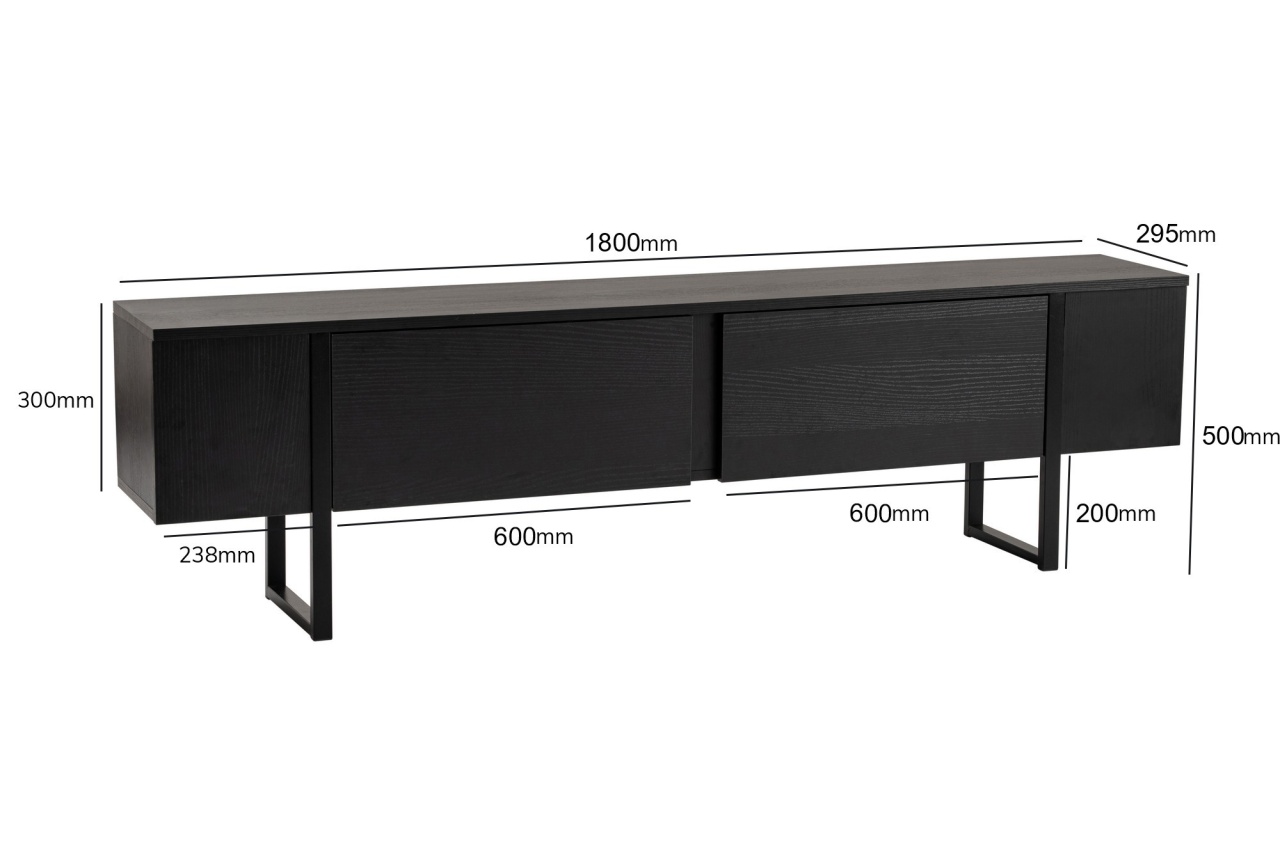 Descoperiți Comoda TV Serenity în culoare neagră, un element elegant și funcțional pentru livingul dumneavoastră. Fabricată din placă aglomerată acoperită cu melamină, aceasta este robustă și ușor de întreținut, rezistând la zgârieturi și pete. Cu dimensiuni generoase de 180 cm lățime, 50 cm înălțime și 29,5 cm adâncime, oferă suficient spațiu pentru echipamentele media și accesorii. Designul său simplu, dar sofisticat, se integrează perfect în orice decor modern. Alegeți Comoda TV Serenity pentru un living organizat și stilat!
