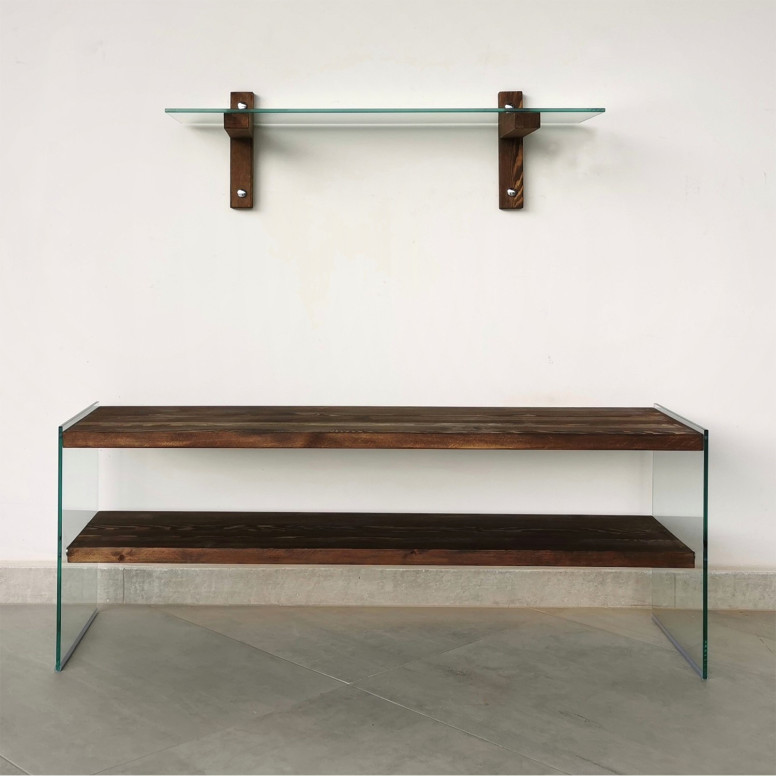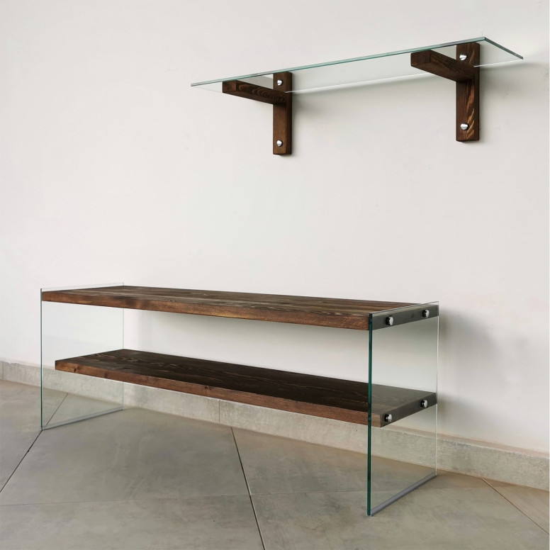 Comoda TV TV104 este realizată din 100% lemn de molid de pin, asigurând durabilitate și un aspect natural. Cu o grosime de 8 mm și un cadru din sticlă calită, aceasta aduce un plus de eleganță oricărui living. Dimensiunile suportului TV sunt de 120 cm lățime, 45 cm înălțime și 35 cm adâncime, fiind ideală pentru televizoare de diverse dimensiuni. Comoda include numeroase rafturi, care pot fi fixate pe perete, având lățimea de 85 cm, înălțimea de 25 cm și adâncimea de 25 cm. Greutatea totală a mobilierului este de 28.5 kg, iar pachetele sunt ușor de manevrat, asigurând o montare simplă.